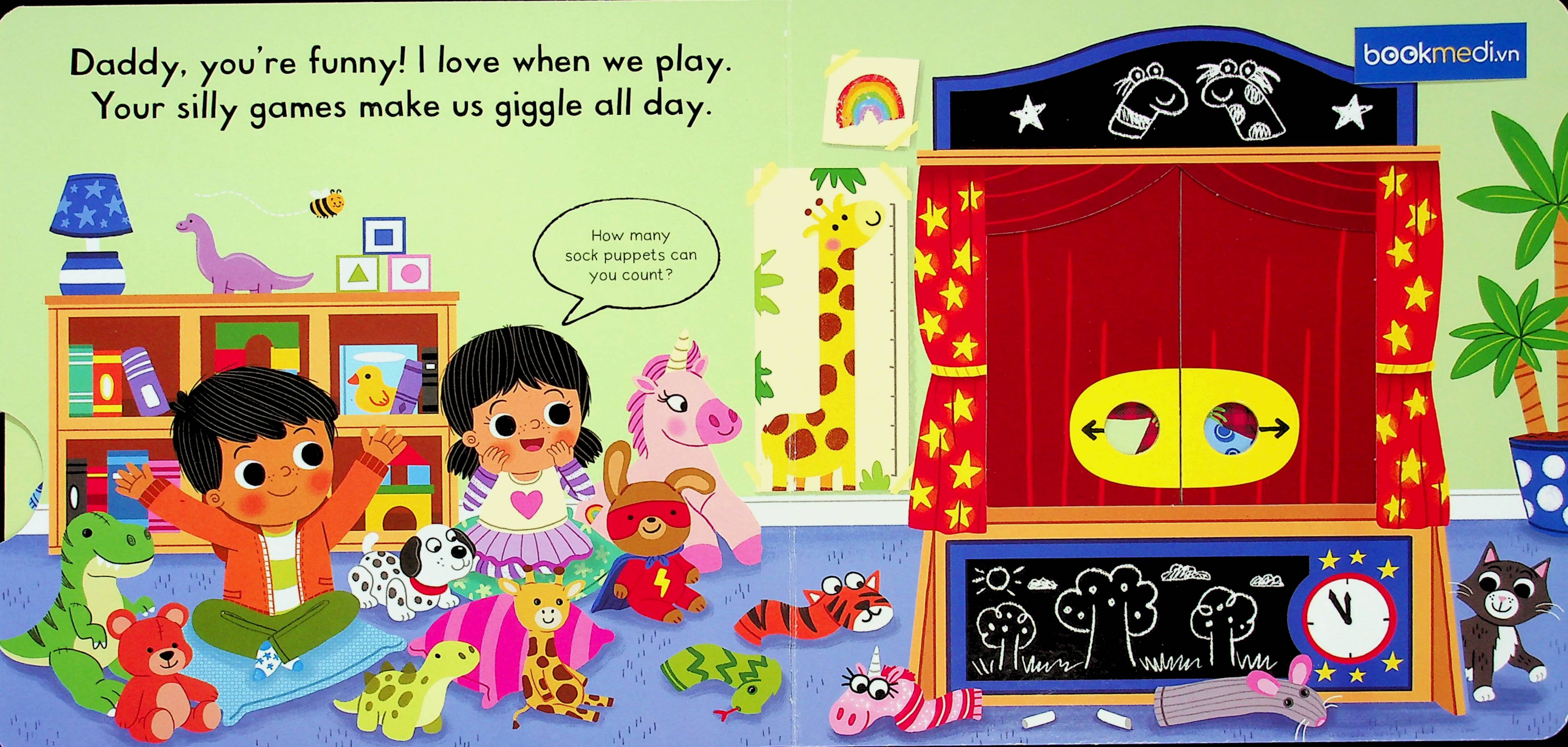 Mua tại TiktokPush, pull and slide the scenes to celebrate Father's Day in I Love My Daddy! From making up silly games to learning to ride a bike, every day's an adventure with Dad by your side!