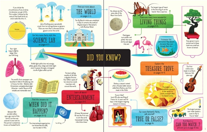 Over 135 flaps to uncover fascinating facts such as what karaoke means in Japanese, how the Mona Lisa got her name and how many people are descended from Genghis Khan. Divided into subjects such as Living Things, Science Lab, Treasure Trove, and When Did It Happen? with topics including the periodic table, the formation of the Earth, saltwater crocodiles, the great pyramid of Giza and lots more. Ideal for improving general knowledge and guaranteed to keep fact-loving, question-asking children entertained for hours.
