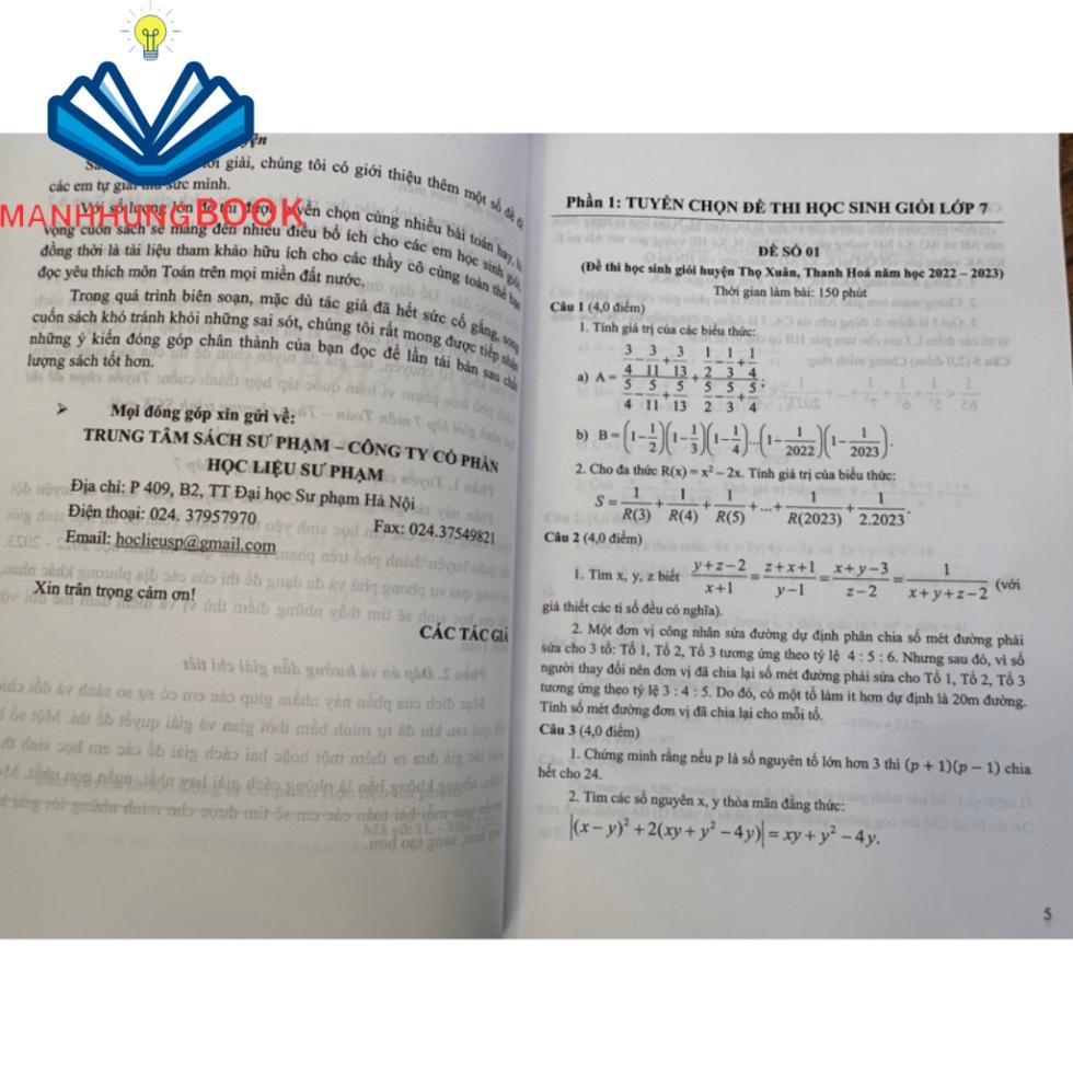 Mua tại TiktokCông ty Học Liệu Sư Phạm giới thiệu: TUYỂN CHỌN ĐỀ THI HỌC SINH GIỎI LỚP 7 MÔN TOÁN ( chương trình mới) Bố cục cuốn sách được chia làm ba phần: Phần 1: Tuyển chọn đề thi học sinh giỏi lớp 7 Phần 2: Đáp án và hướng dẫn giải chi tiết Phần 3: Một số đề tự luyện