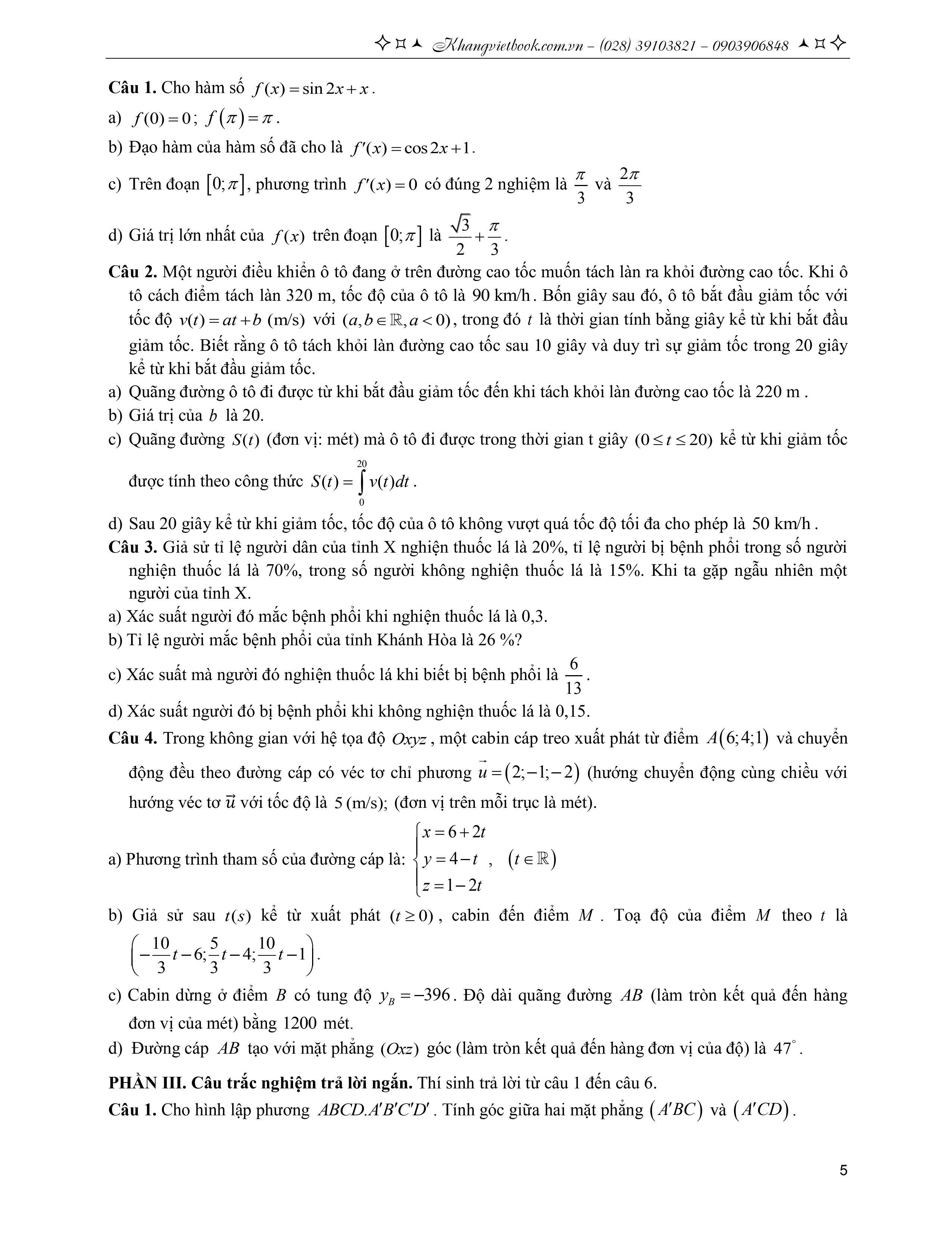 Phần 1 có nội dung kiến thức nhận biết thông hiểu nên sách chỉ hướng dẫn giải những câu và những nội dung cần chú ý. Phần II và III có giải chi tiết và có nhiều bài toán hay, độc và lạ để Học sinh ôn luyện nhưng nội dung vẫn bám sát theo cấu trúc mới của BGD.