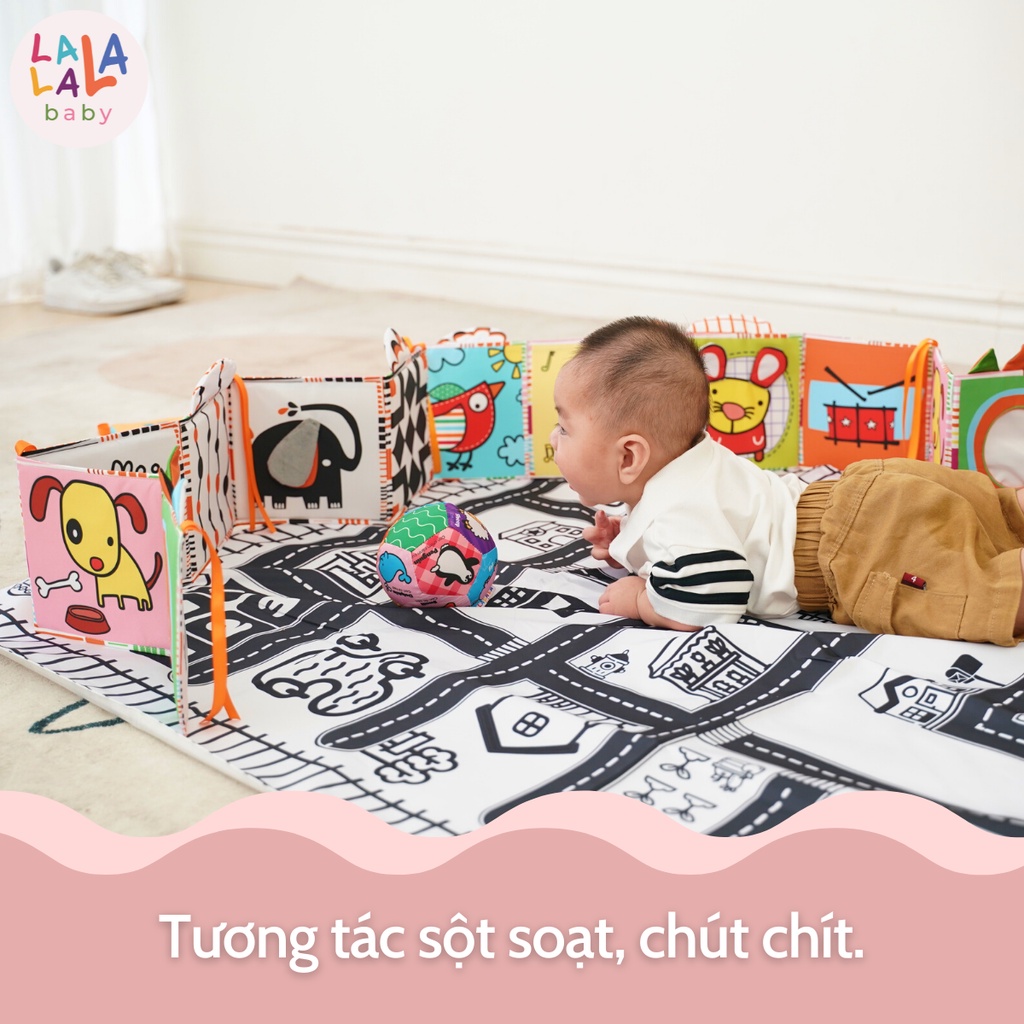Tranh Vải Kích Thích Thị Giác Cho Bé Sơ Sinh, Phát Triển Não Bộ Tummy Time - Lalala Baby Sách vải lật mở đa tương tác Lalala baby, made in Việt Nam - Chất