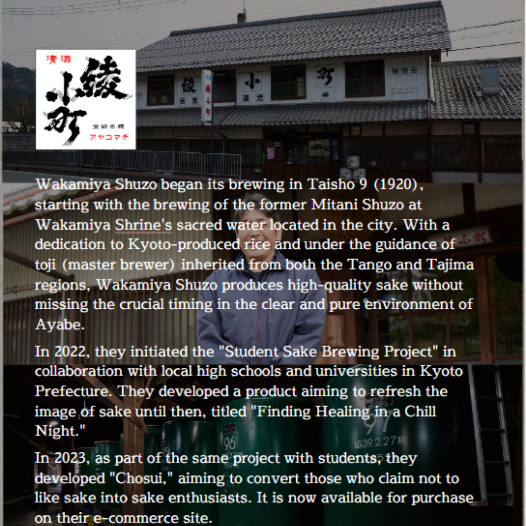 Mua tại TiktokAyane Junmai Ginjo Cái tên Ayane bắt nguồn từ tên con gái của chủ tịch công ty Yasuo Kiuchi. Ông Ayouno Kitaura(người đã thiết kế nhãn cho "Junmai Ginjo Sake Ayane", mà Công ty TNHH Nhà máy bia Sake Wakamiya đã bán trong bảy năm) đã lấy cảm hứng từ tình tiết đó với một bức ảnh của cô ấy, và quyết định "lấy chính Ayane làm họa tiết của thiết kế". Kết quả là một thiết kế tuyệt vời trong đó bầu trời đầy sao của Ayabe được chiếu lên tóc của Ayane. Junmai Ginjo, Ayane đặc biệt quan tâm đến "sản xuất địa phương để tiêu thụ tại địa phương, tất cả Ayabe" và sử dụng tất cả loại gạo sake "Gohyakumangoku" được ông Nakatsukuma, một nông dân ở thành phố Ayabe, chăm sóc chu đáo và nước nấu rượu là của riêng xưởng rượu, nước ngọt chảy ra từ giếng và cầu nguyện tại Đền Wakamiya, cũng trong thành phố. “Âm thanh của Ayakomachi” vang vọng nhẹ nhàng bên trong nhà máy rượu và “âm thanh mang màu sắc của Ayabe” có thể được nghe thấy trong suốt các mùa. Hi vọng rằng bạn sẽ tận hưởng được vị ngọt dịu của rượu sake này khi cảm nhận theo cách này. Dòng sake: Junmai Ginjo. Gạo dùng: Tỉ lệ đánh bóng gạo: 55% Tỉ lệ axit: Sake Meter Value (SMV): Thành phần: gạo (sản xuất trong nước), men gạo (gạo sản xuất trong nước) Thể tích: 720ml. Lưu ý: Trên 20 tuổi mới được phép dùng. Phụ nữ có thai hoặc cho con bú nên hạn chế sử dụng. Bảo quản nơi mát lạnh, tránh ánh nắng trực tiếp. Để đảm bảo chất lượng sake nên bảo quản trong ngăn mát tủ lạnh khi không dùng hết. Nồng độ cồn: 15% NSX: Wakamiya Shuzo Co., Ltd. NK&PP: Công ty TNHH Starmark Vietnam Xuất xứ: Nhật Bản