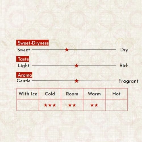 NGƯỜI DƯỚI 18 TUỔI KHÔNG ĐƯỢC UỐNG RƯỢU, BIA Xuất xứ: Nhật Bản Thành phần: Gạo, nước, men rượu Hàm lượng Ethanol: 14.7% Hướng dẫn sử dụng: Uống trực tiếp, uống nóng hoặc lạnh Hướng dẫn bảo quản: Bảo quản