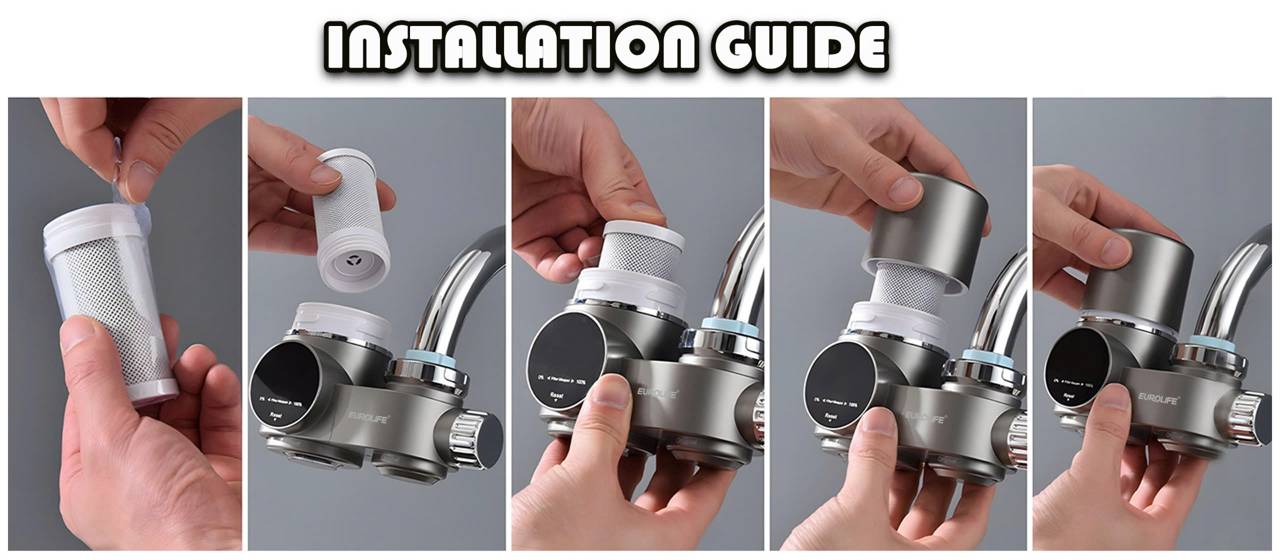 Máy lọc nước tinh khiết trực tiếp đầu vòi, mà hình LED Eurolife EL-LS-A13(G) Màu xám ️ Thương hiệu Eurolife Việt Nam Sản phẩm được bán tại thị trường Hoa Kỳ Màn hình LED hiển