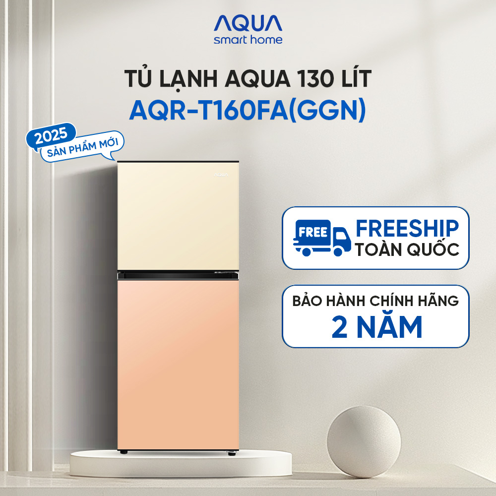 ✨[SẢN PHẨM MỚI 2025] Tủ lạnh AQUA 130 lít ngăn đá trên AQR-T160FA(GGN) - Màu Be hồng - Freeship toàn quốc - Bảo hành 2 năm - Hàng chính hãng