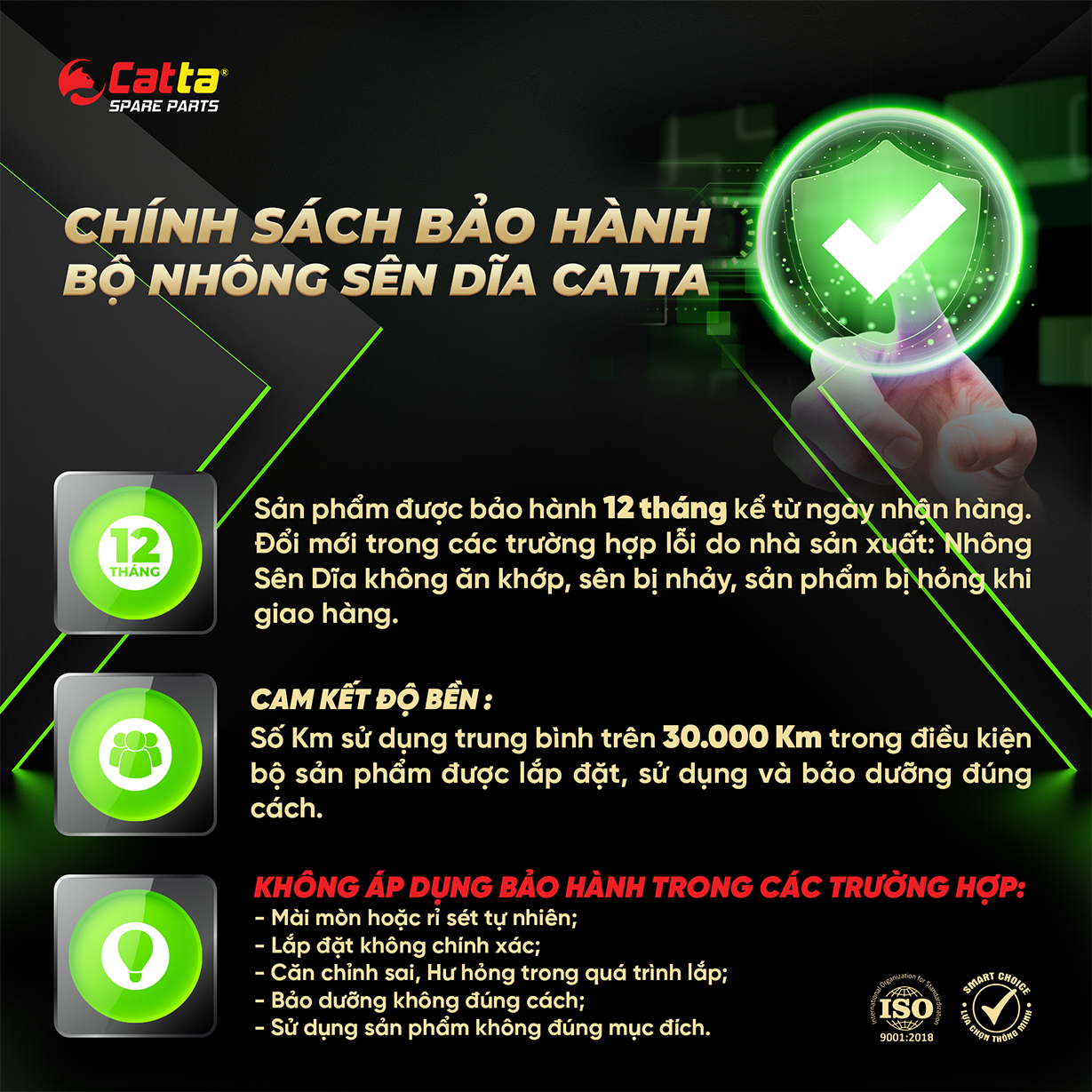 Các sản phẩm nhông sên dĩa CATTA được bán trên kênh Online cũng là những sản phẩm đang được Chúng tôi phân phối sỉ đến hệ thống các tiệm sửa xe lâu năm tại nhiều tỉnh thành. Sản phẩm đã được những người thợ lành nghề chứng thực về chất lượng và độ tương thích với các dòng xe máy, do đó Chúng tôi vô cùng tự tin khi đưa sản phẩm tiếp cận dễ hơn, tiện lợi hơn đến người tiêu dùng thông qua kênh bán hàng Online.
