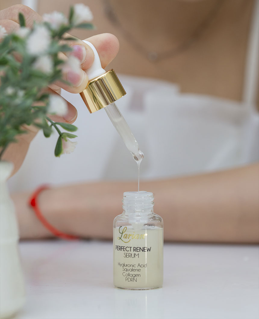 Perfect Renew Larian+ được công bố bởi Bộ An toàn thực phẩm và dược phẩm Hàn Quốc chứa Adenosine có chức năng cải thiện nếp và DNA cá hồi có khả năng tái sinh làn da.