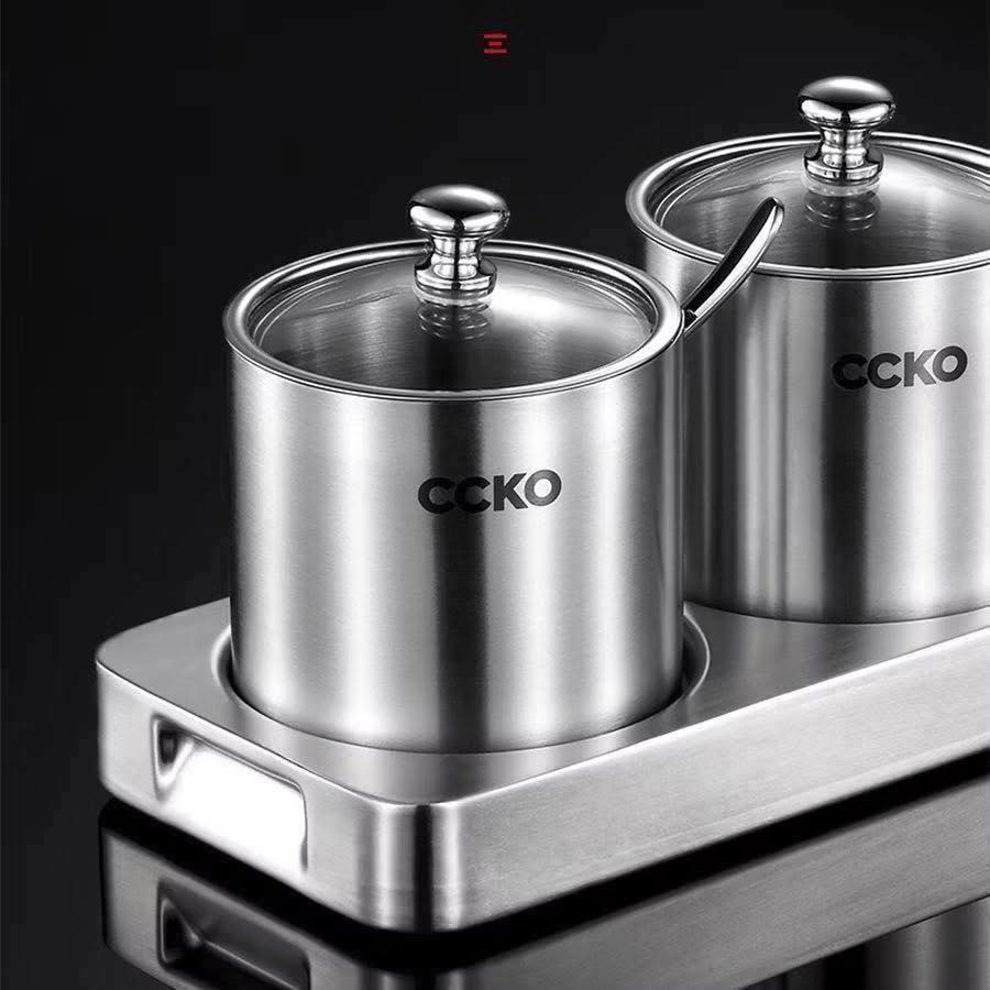 ✨Set 3 hũ đựng gia vị CCKO inox 304 nắp thủy tinh kèm khay hàng