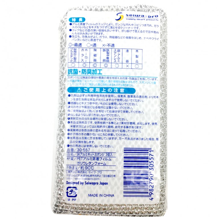 Set 03 Miếng mút rửa ly chén Seiwa Pro hàng nội địa Nhật Bản Ưu điểm vượt trội: - Mút rửa ly tách Seiwa (Bạc) sử dụng chất liệu màng nhôm cho khả năng cọ