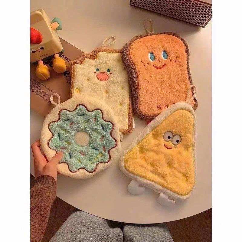 Set 4 Khăn Lau Tay Thấm Hút Tốt Hoạ Tiết Bánh Mỳ Phô Mai Cute- Chiếc Khăn Lau Tay Mềm Mịn Thấm Hút