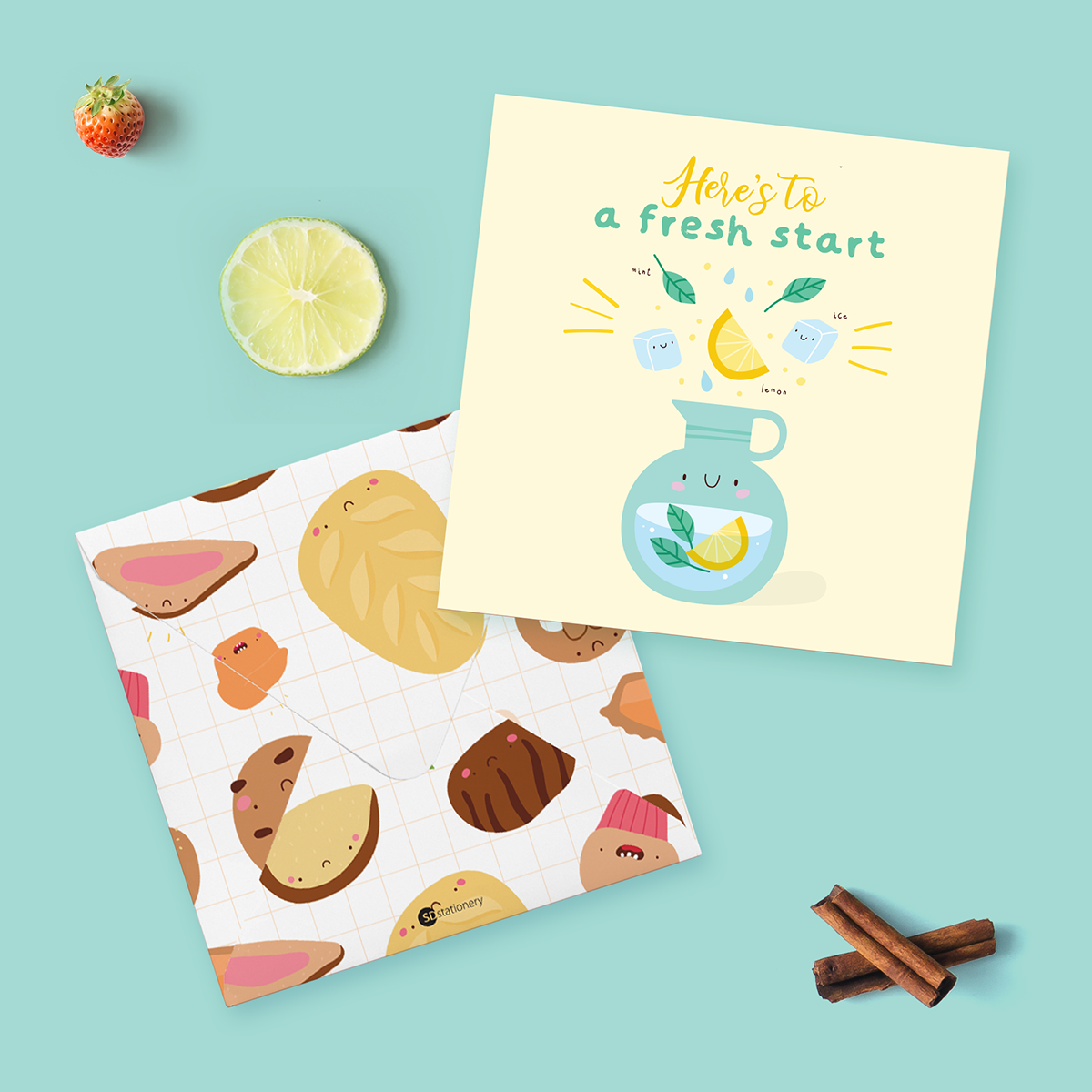 ✨Set 6 thiệp tặng bạn bè, chúc mừng, chúc may mắn, động viên SDstationery TASTY TREAT 12x12 minh họa dễ thương cute cho tâm hồn ăn uống