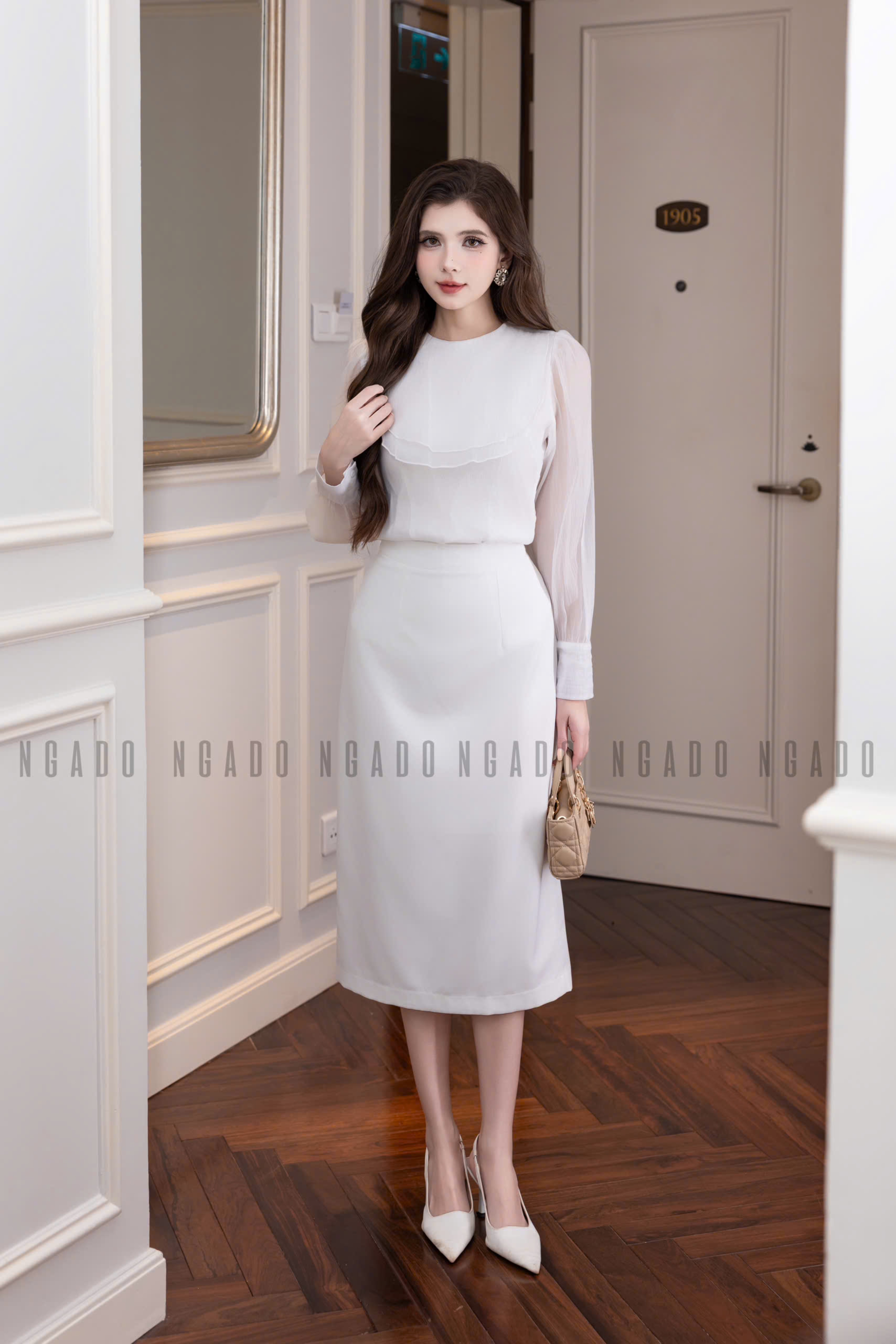 Tên sản phẩm: Set áo váy voan trắng bút chì