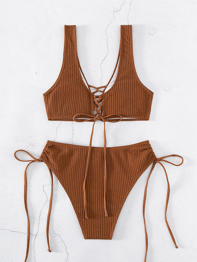 ✨Sét bikini 2 mảnh quây cúp ngực khoen tròn màu trơn khoét eo đi biển sexy