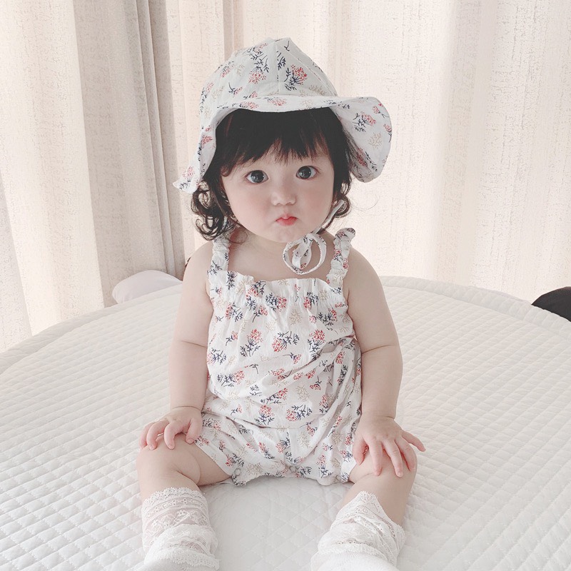 Set Body hai dây kèm mũ in hoa bé gái 3-36 tháng Shop chuyên bán hàng phân khúc TRUNG và CAO CẤP Set Body hai dây kèm mũ in hoa bé gái 3-36 tháng Size