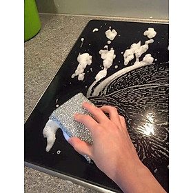 Giẻ này ngoài dùng trên chảo chống dính thì rửa nồi niêu các đồ bát đĩa khác bình thường, rất nhanh sạch các đồ ăn thừa bám trên nồi hay bát đĩa nhé, ví dụ như các hột cơm thừa chăng hạn.
