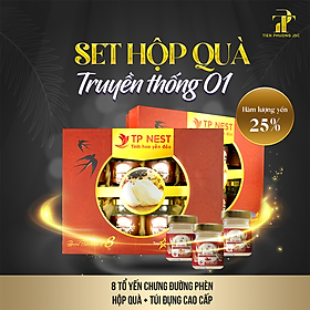 Set hộp quà Truyền thống 01- Tiến Phương JSC , bao gồm: - 8 hũ tổ yến chưng đường phèn (70 ml/hũ) - Hộp quà - Túi đựng cao cấp Mô tả - Với thành
