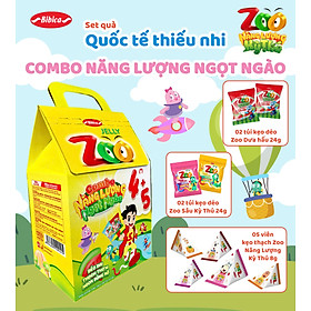 Mua tại TiktokSet quà 1/6 Zoo Bibica – 2 kẹo dẻo dưa hấu, 2 sâu kì thú, 5 thạch năng lượng – Combo năng lượng cho bé Xuất xứ: Việt Nam Thương hiệu: Bibica HSD: 1 năm kể từ ngày sản xuất MÔ TẢN SẢN PHẨM Set quà Zoo Bibica được thiết kế dành riêng cho dịp 1/6 – Tết Thiếu Nhi, gồm nhiều sản phẩm kẹo và thạch trái cây với hương vị tươi mới, phù hợp khẩu vị trẻ em. Đây là lựa chọn phù hợp để làm quà tặng cho bé trong các dịp đặc biệt, mang đến sự vui nhộn và hấp dẫn. Commbo bao gồm: