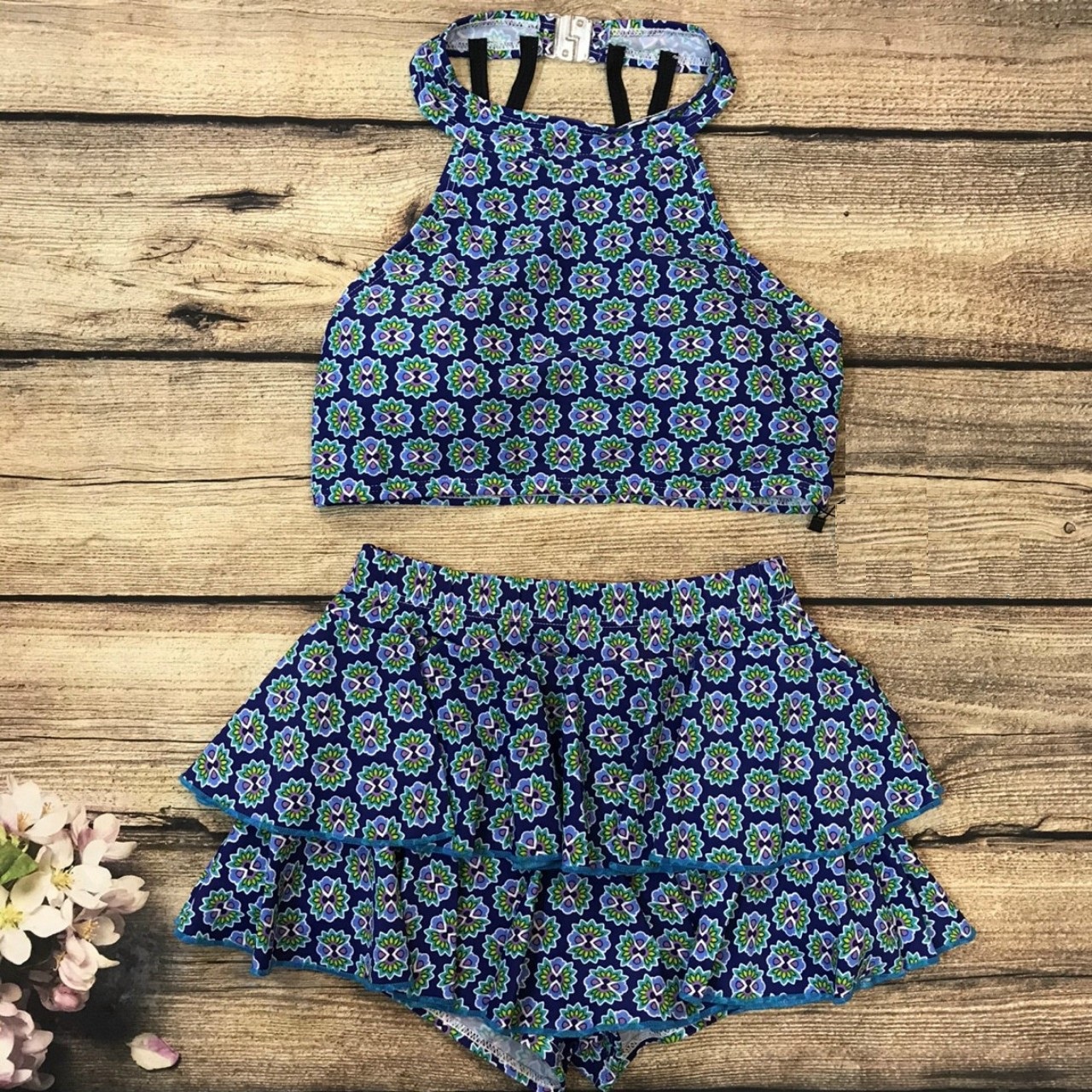 - Mẫu đồ bơi 2 mảnh phong cách năng động tươi mới cho các cô gái trẻ trung. - Dáng cộc tay quần sooc đùi ôm gọn gàng cơ thể, áo có sẵn đệm tròn