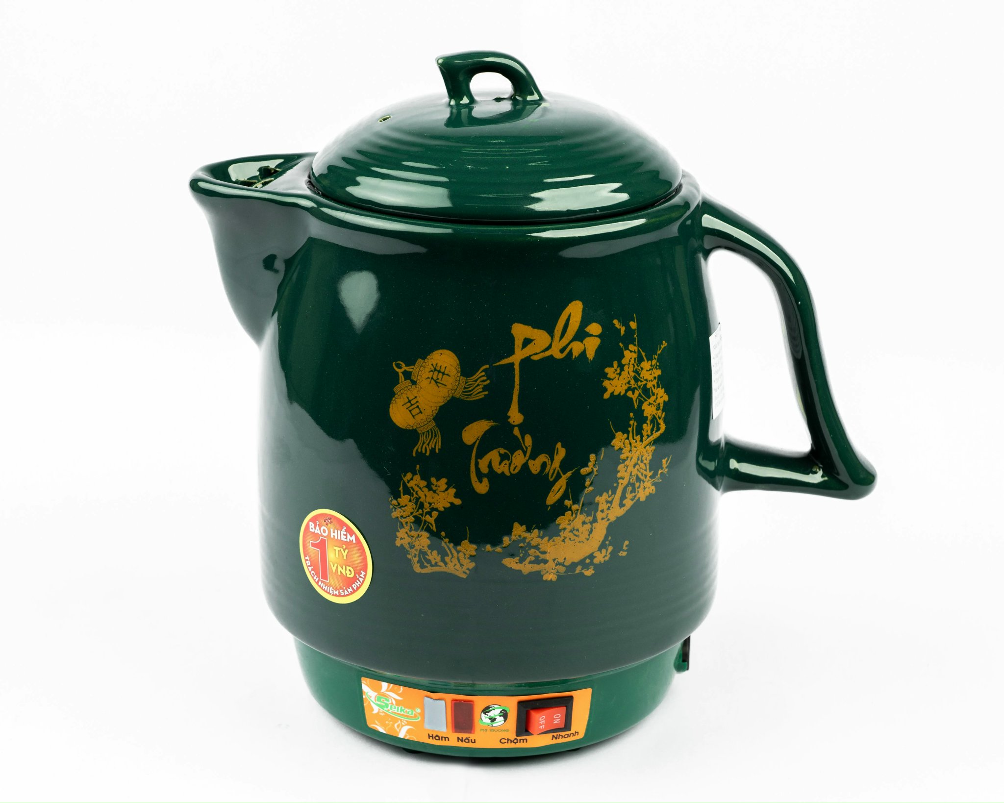 - Dung tích: 3.2L / Công suất: 450W - Chất liệu gốm được nung ở nhiệt độ 1300 độ C - Hoàn toàn khử hết chì trong đất. - Men phủ ấm là men tự