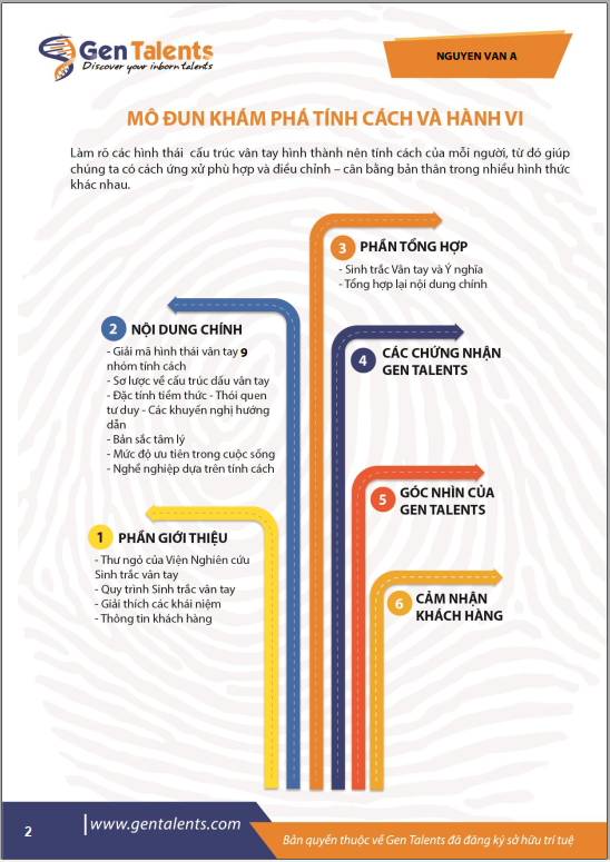 NỘI DUNG CHÍNH CỦA BÀI BÁO CÁO SINH TRẮC VÂN TAY GEN TALENTS – BẢN ĐẦY ĐỦ 4 MODULE: