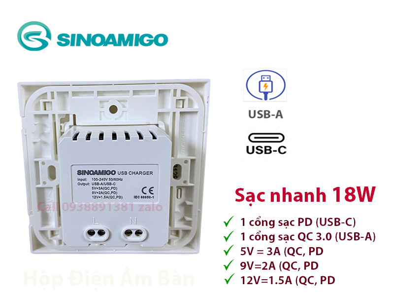 Sinoamigo P21-QC1 là một giải pháp sạc hiệu quả cho các thiết bị điện tử của bạn. Với 2 cổng USB bao gồm USB Type C và USB Type A, tích hợp công nghệ sạc nhanh QC, sản phẩm này giúp bạn dễ dàng sạc đầy pin cho các thiết bị di động của mình. Thiết kế âm tường, màu trắng tinh tế, phù hợp cho lắp đặt ở nhiều không gian như gia đình, nhà hàng, khách sạn, quán cà phê Sinoamigo P21-QC1 - lựa chọn hàng đầu cho nhu cầu sạc của bạn.