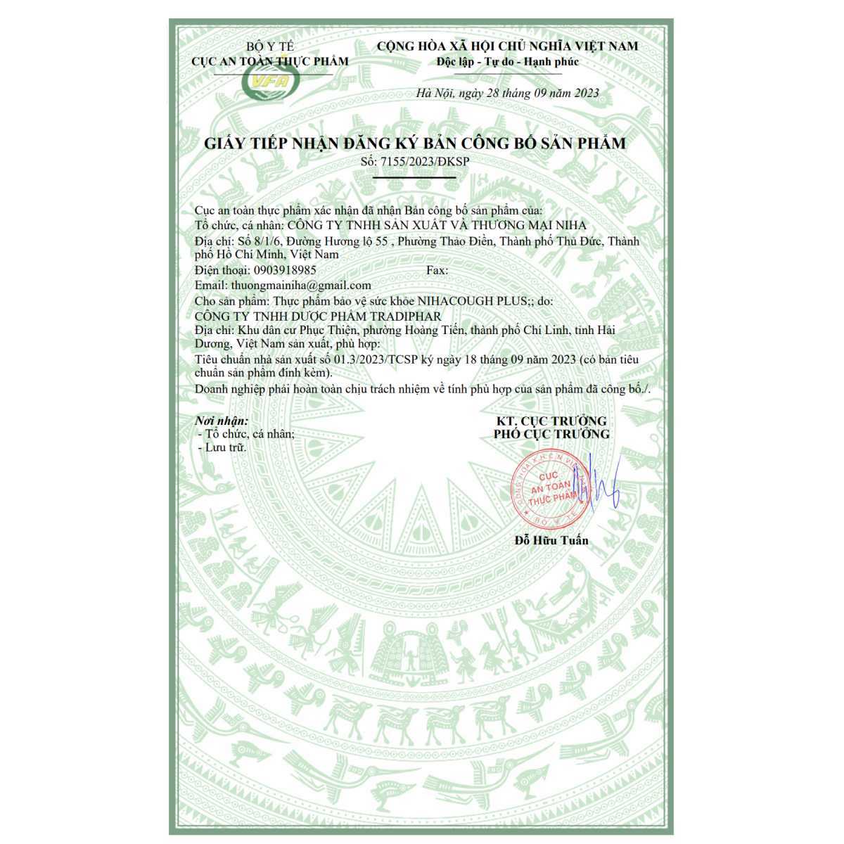 ***Chú ý: Thực phẩm này không phải là thuốc, không có tác dụng thay thế thuốc chữa bệnh. Không dùng cho phụ nữ có thai, phụ nữ cho cho con bú, người vận hành máy móc, tàu xe, làm việc trên cao, người mẫn cảm, kiêng kỵ với bất kỳ thành phần nào của sản phẩm. Người đang dùng thuốc tham khảo ý kiến của chuyên gia y tế trước khi sử dụng.