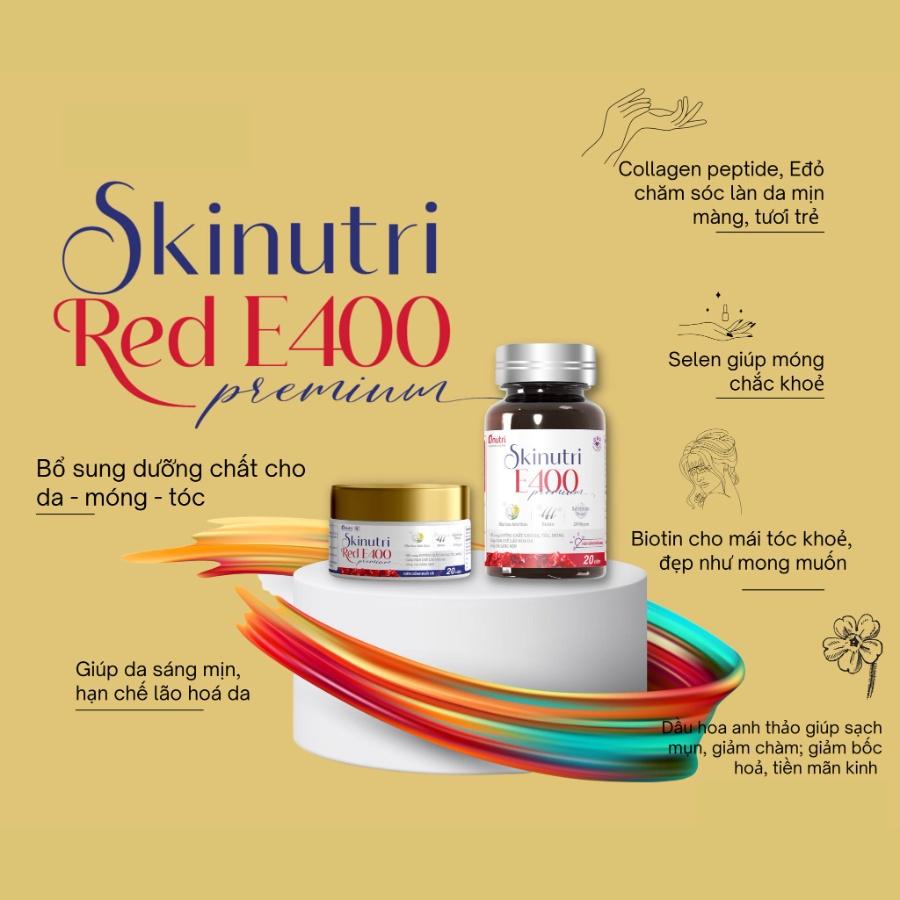 ✨Skinutri Red E400 Bổ sung dưỡng chất cho Da, Tóc, Móng, hạn chế lão hóa da, giúp da sáng đẹp - Hộp 2 lọ x 20 viên