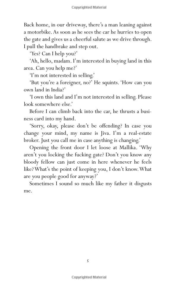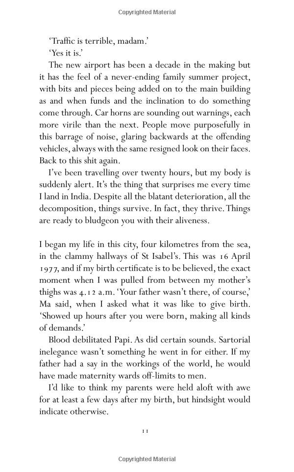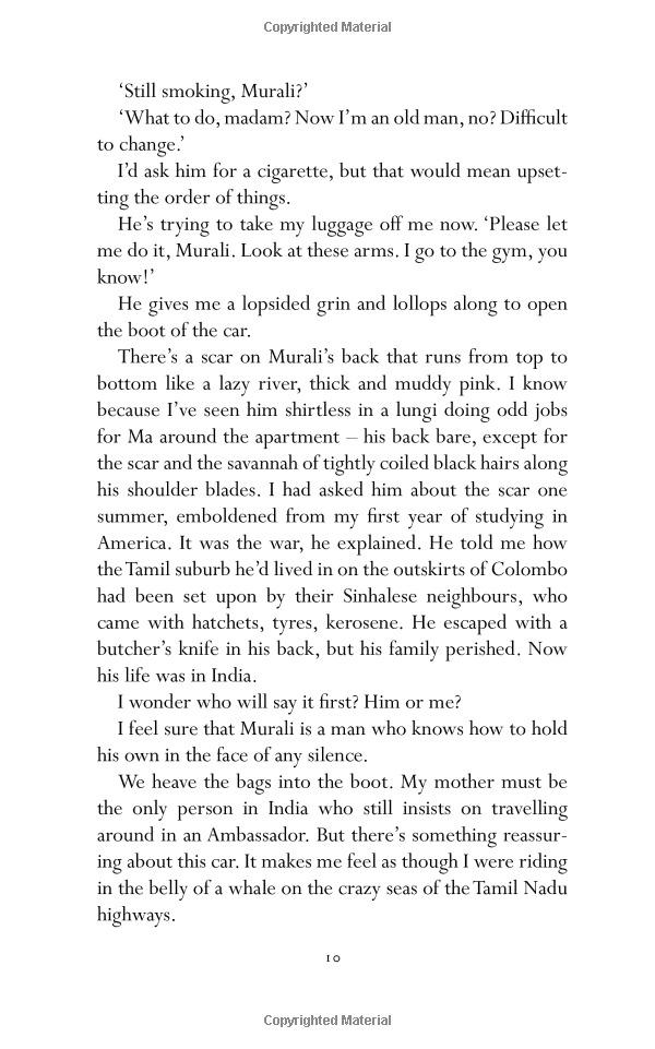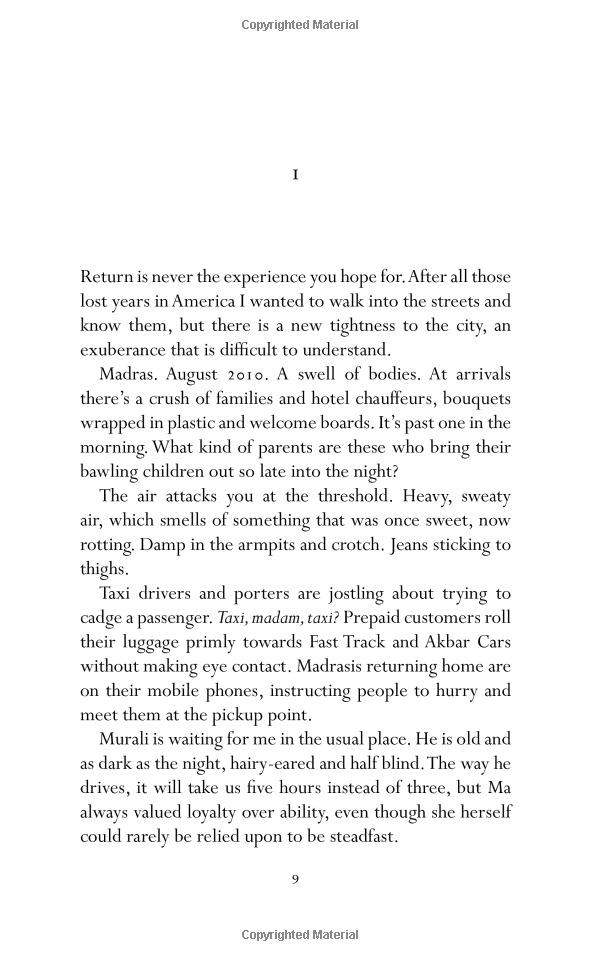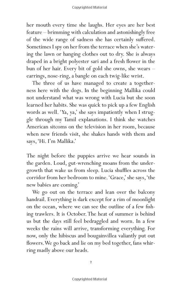 Soon Grace sets up a new and precarious life in this lush, melancholy wilderness, with Lucia, the village housekeeper Mallika, the drily witty Auntie Kavitha and an ever-multiplying litter of puppies. Here in Paramankeni, with its vacant bus stops colonised by flying foxes, its temples and step-wells shielded by canopies of teak and tamarind, where every dusk the fishermen line the beach smoking and mending their nets, Grace feels that she has come to the very end of the world. But Grace's attempts to play house prove first a struggle, then a strain, as she discovers the chaos, tenderness, fury and bewilderment of life with Lucia.