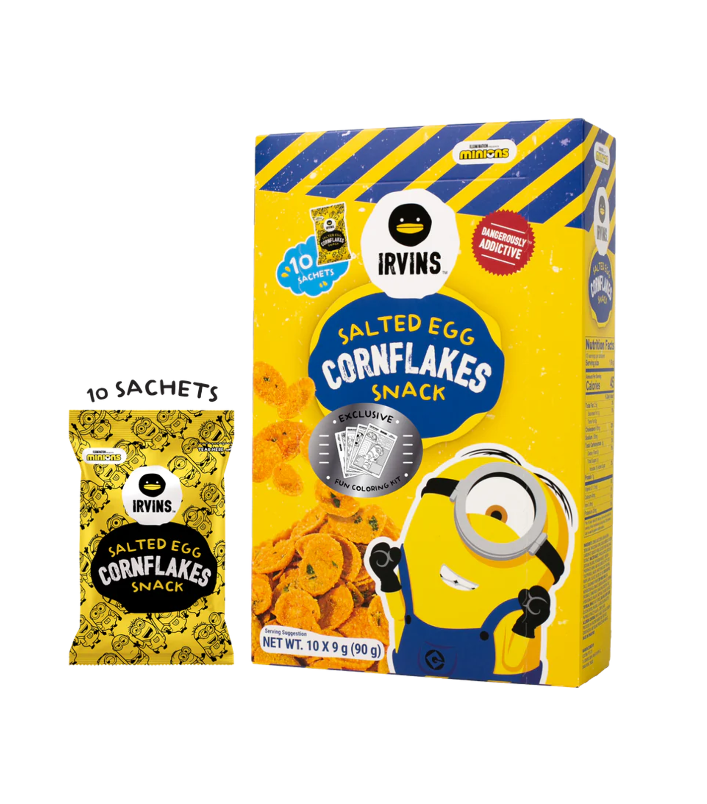 CORNFLAKES - SẢN PHẨM HOÀN TOÀN MỚI TỪ IRVINS! LẦN ĐẦU TIÊN KẾT HỢP VỚI MINIONS Sự kết hợp đỉnh cao của bột ngô giòn rụm, mỏng nhẹ được kết hợp với vị ngon của