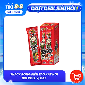 - Bánh Snack Rong biển Big Roll vị cay hộp 6 gói 3,6g là món ăn vặt bổ sung nhiều dinh dưỡng cũng như nguồn năng lượng tuyệt vời cho các hoạt động. Với hương vị thơm ngon từ rong biển sấy khô giòn tan, sản phẩm là lựa chọn tuyệt vời để nhâm nhi cùng bạn bè và người thân. Snack được đóng gói nhỏ gọn, tiện lợi, dễ dàng mang theo khi ra ngoài, đi picnic, dã ngoại…