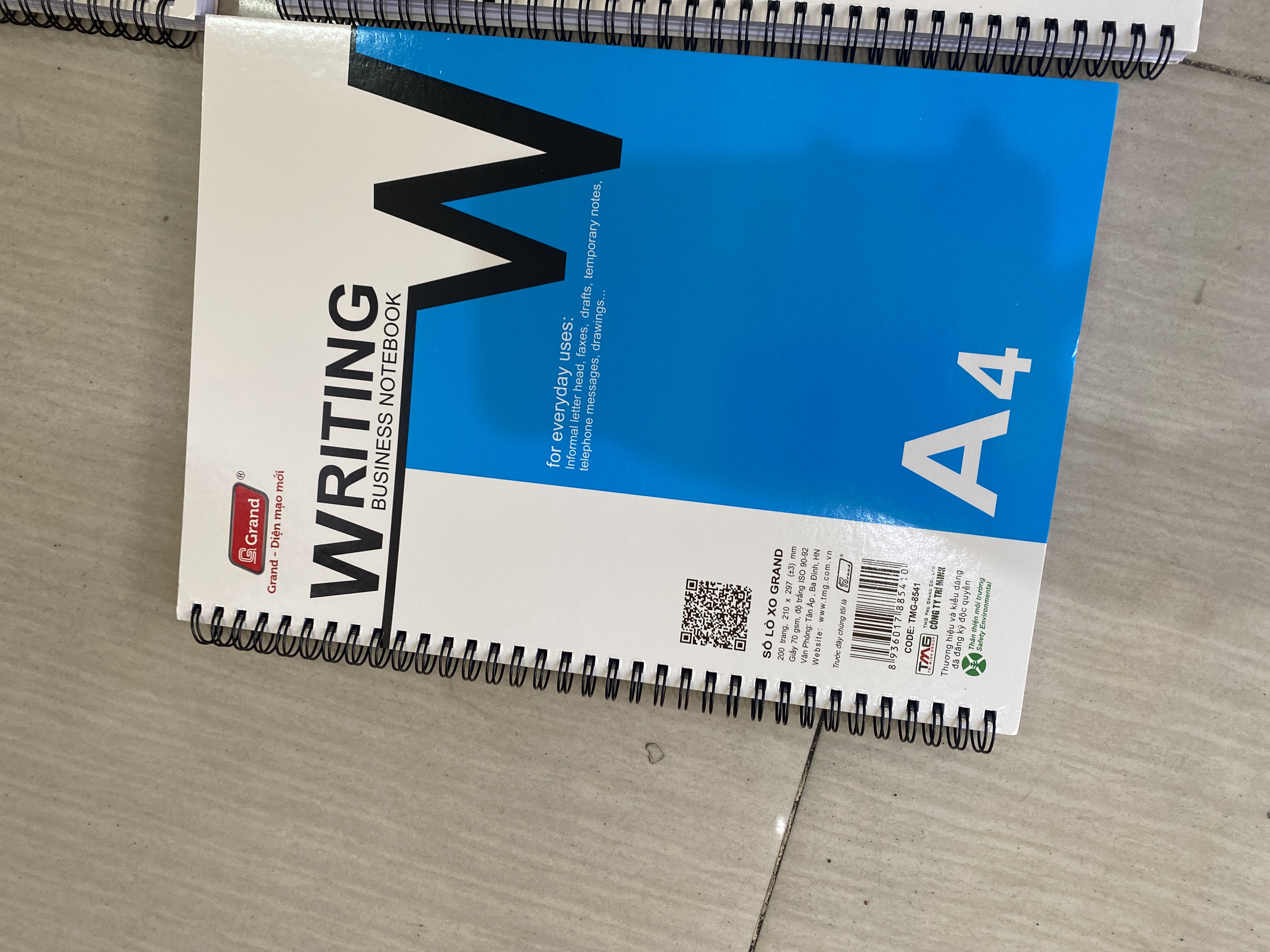 Sổ Grand A4 Dày gồm 200 trang giấy khổ A4, đóng gáy dạng lò xo tiện dụng. Sản phẩm được thiết kế hiện đại với bìa cứng đẹp mắt.