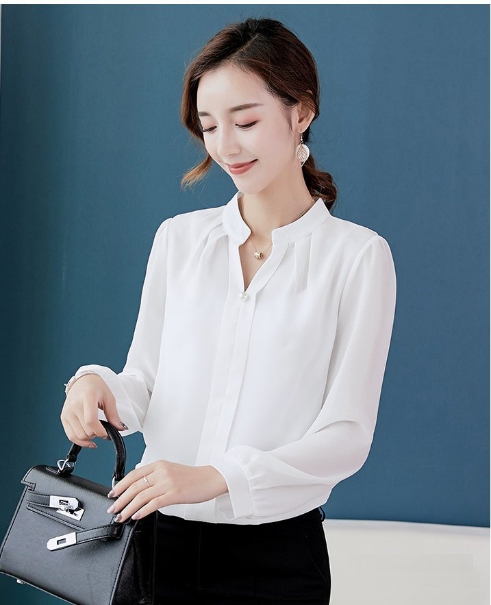 Kiểu dáng: áo sơ mi công sở cổ tim thanh lịch, phối nút duyên dáng, tay dài cài nút phong cách phù hợp công sở, công tác, đi dạy, đi học, đi tiệc Chất liệu: