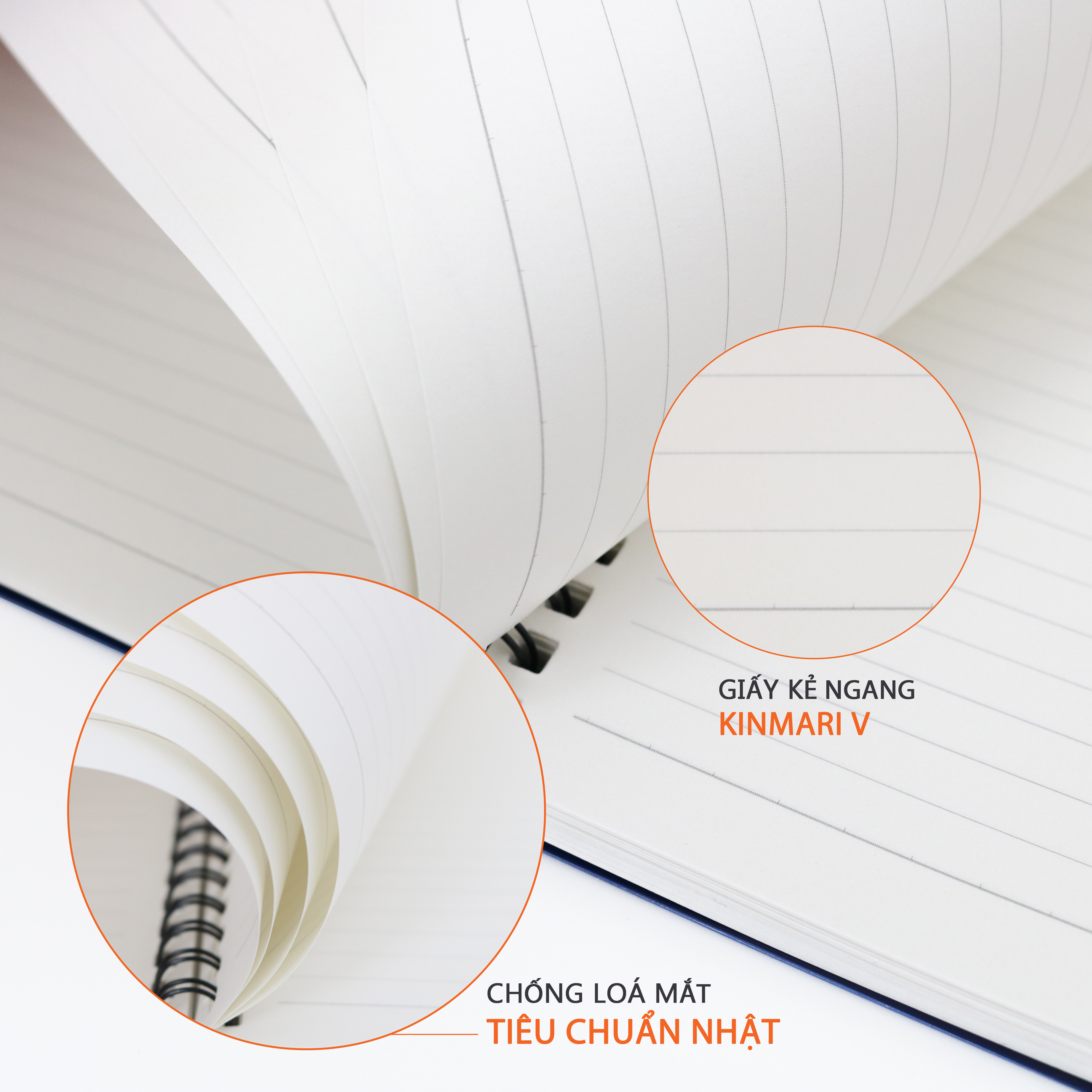 Kiểu dáng: Giấy kẻ ngang, gáy lò xo.
