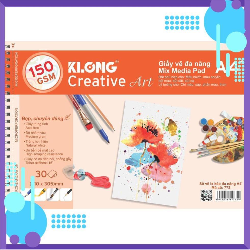 ✨ Sổ vẽ KLONG A4+ cao cấp lò xo kép xé 150GSM 30 tờ MS772