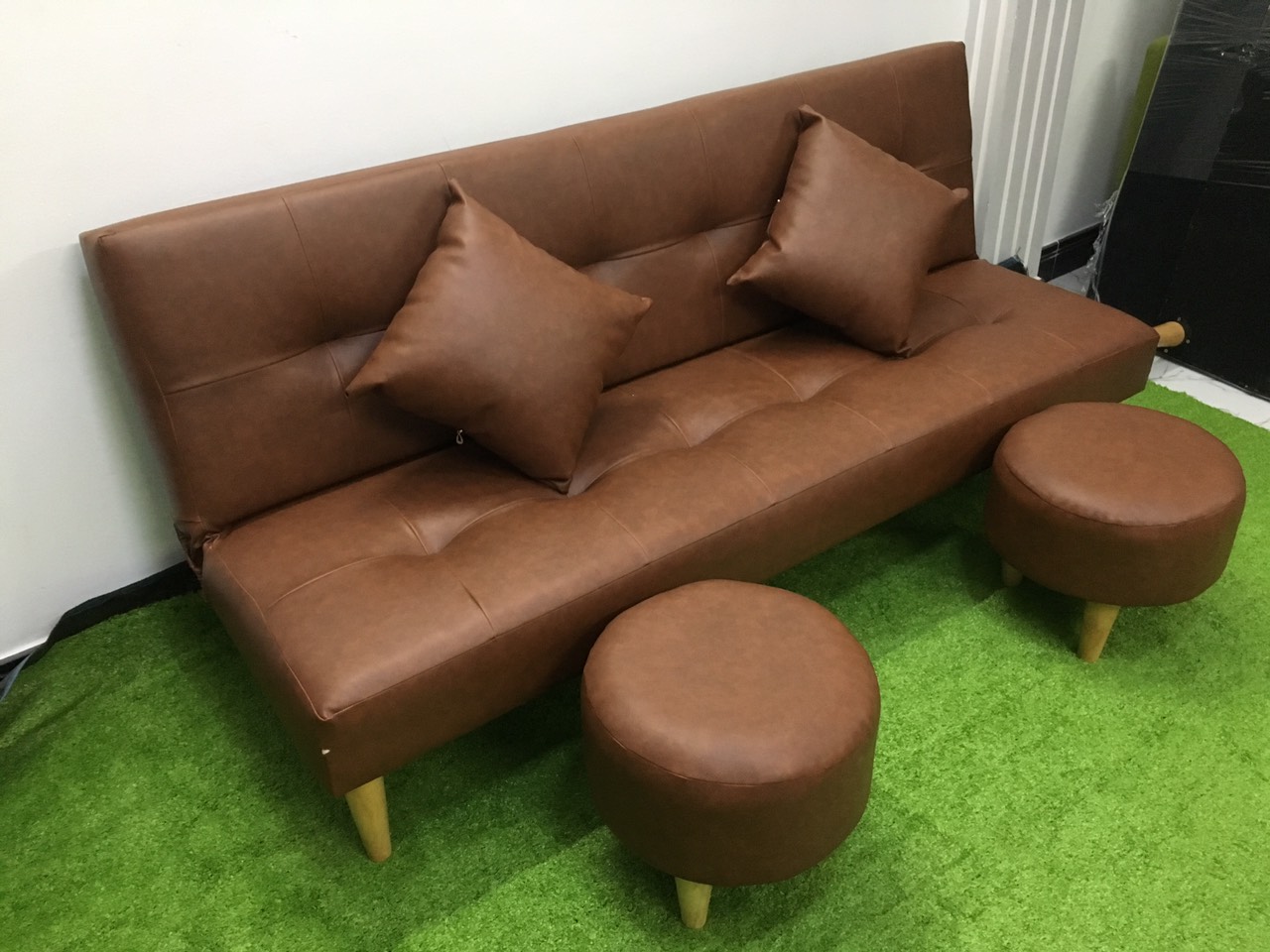 ✨Sofa bed, sofa giường màu nâu và 2 đôn tròn SB16