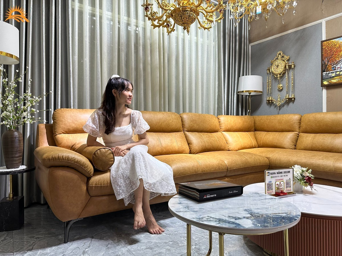 ✨Sofa góc L da bò Italy Juno sofa màu vàng bò – SFLCT01 3m3 x 2m8 hàng cao cấp chuẩn da bò nhập khẩu Ý