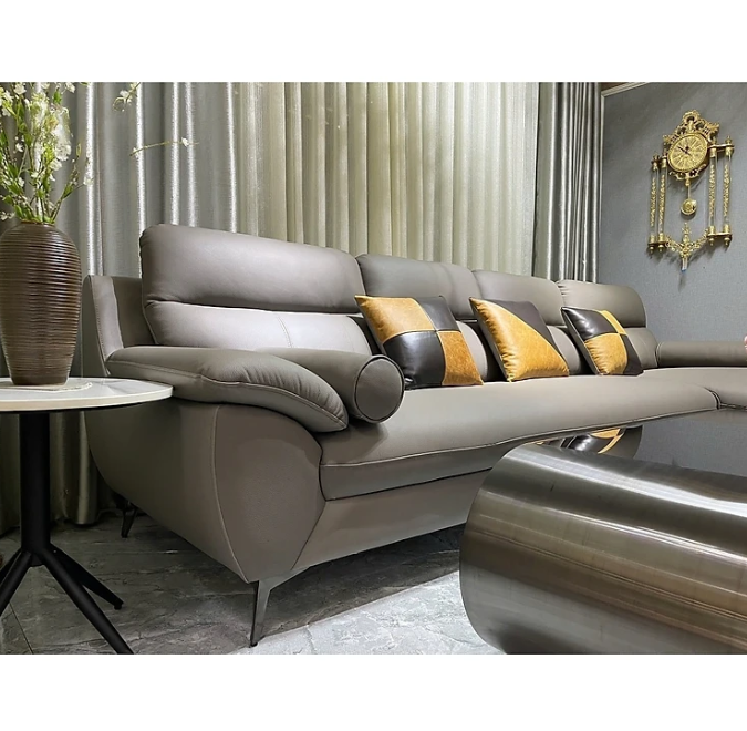 Phần da bò thật: Sử dụng ở các mặt tiếp xúc như đệm ngồi, tựa lưng, tay sofa giúp giữ nguyên trải nghiệm mềm mại của da bò thật.