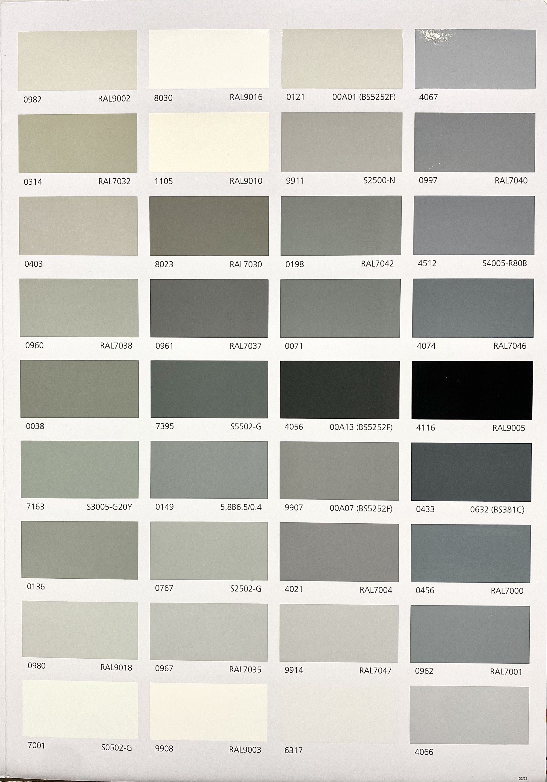 - Màu sắc sơn công nghiệp Jotun : Theo bảng màu và hệ thống pha sơn công nghiệp tự động (MCI) Ivory White 566, Yellow 414, Orange 436, Yellow 258, Red 967 (Ral 3000), Ral 1004, Red 49, White, Black, Ral 3013, Tomato Red 2079, Ral 2001, Yellow 2, Green 137, Signal Green 7075, Ral 6032, Green 431, Green 437, Blue 139, Blue 599, Blue 129, Grey 38, grey 136, Grey 403, Light grey 967, Ral 7035, grey 433, grey 149, grey 456, ral 7000, ral 5002, ral 5005, ral 6000, ral 6001, Ral 6011, ral 1003, ral 1015, ral 3020, ral 8017, ral 9001.