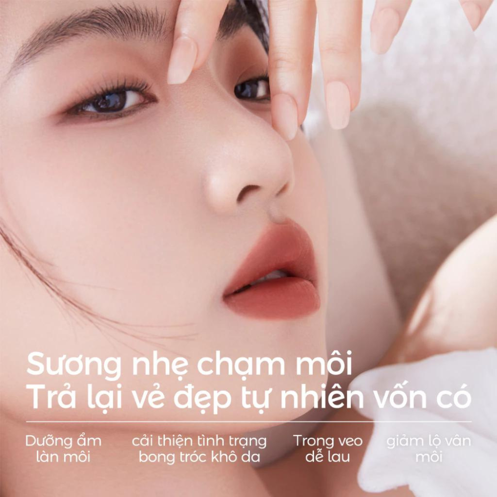 Chất son mịn, glow nhẹ và giữ màu tint lâu với thành phần chiết hoa Lộ Thủy và bổ sung collagen cho môi chống nhăn và thâm môi hiệu quả giúp cho môi luôn mọng