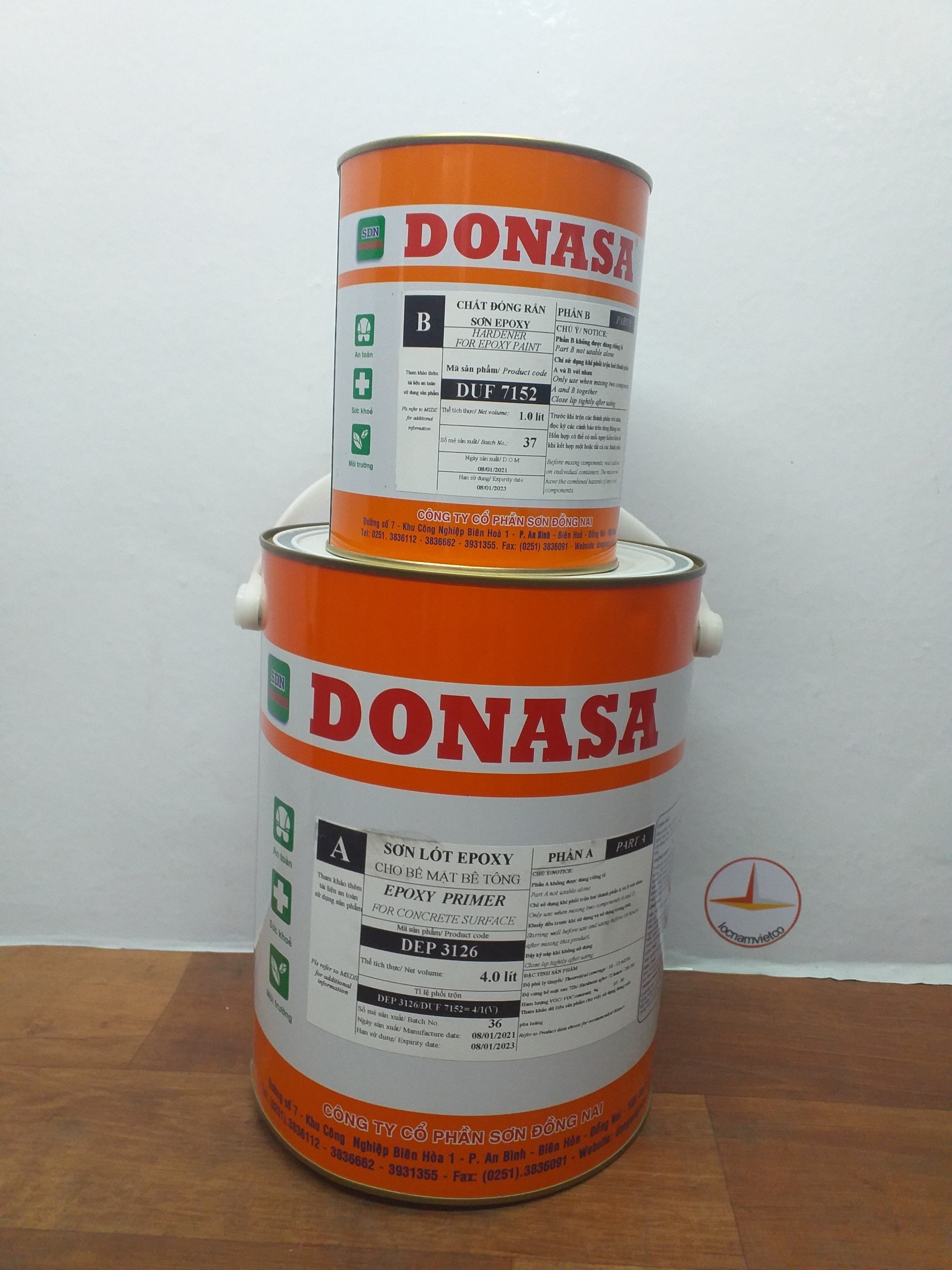 Mua tại TiktokSơn Lót sàn Bê tông Donasa DEP 3126 5L Là loại sơn Epoxy (Sơn hai thành phần) dùng lót lên bề mặt nền bê tông nhằm tăng độ bám dính giữa nền bê tông và lớp sơn phủ màu. I/ Đặc điểm :