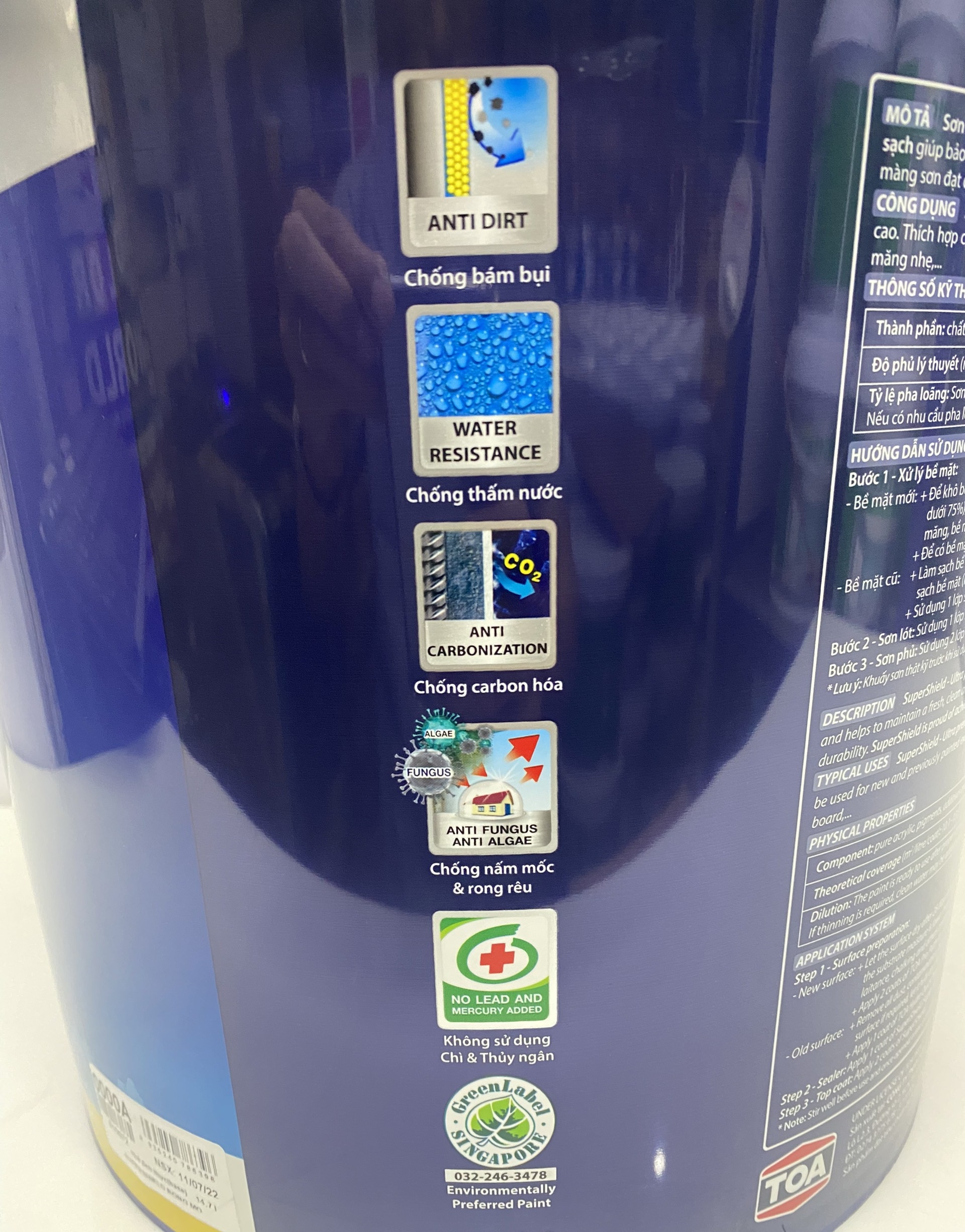 ·Hàm lượng chất hữu cơ bay hơi (VOCs): ≤ 50 g/L bề mặt bóng mờ, ≤ 70 g/L bề mặt siêu bóng