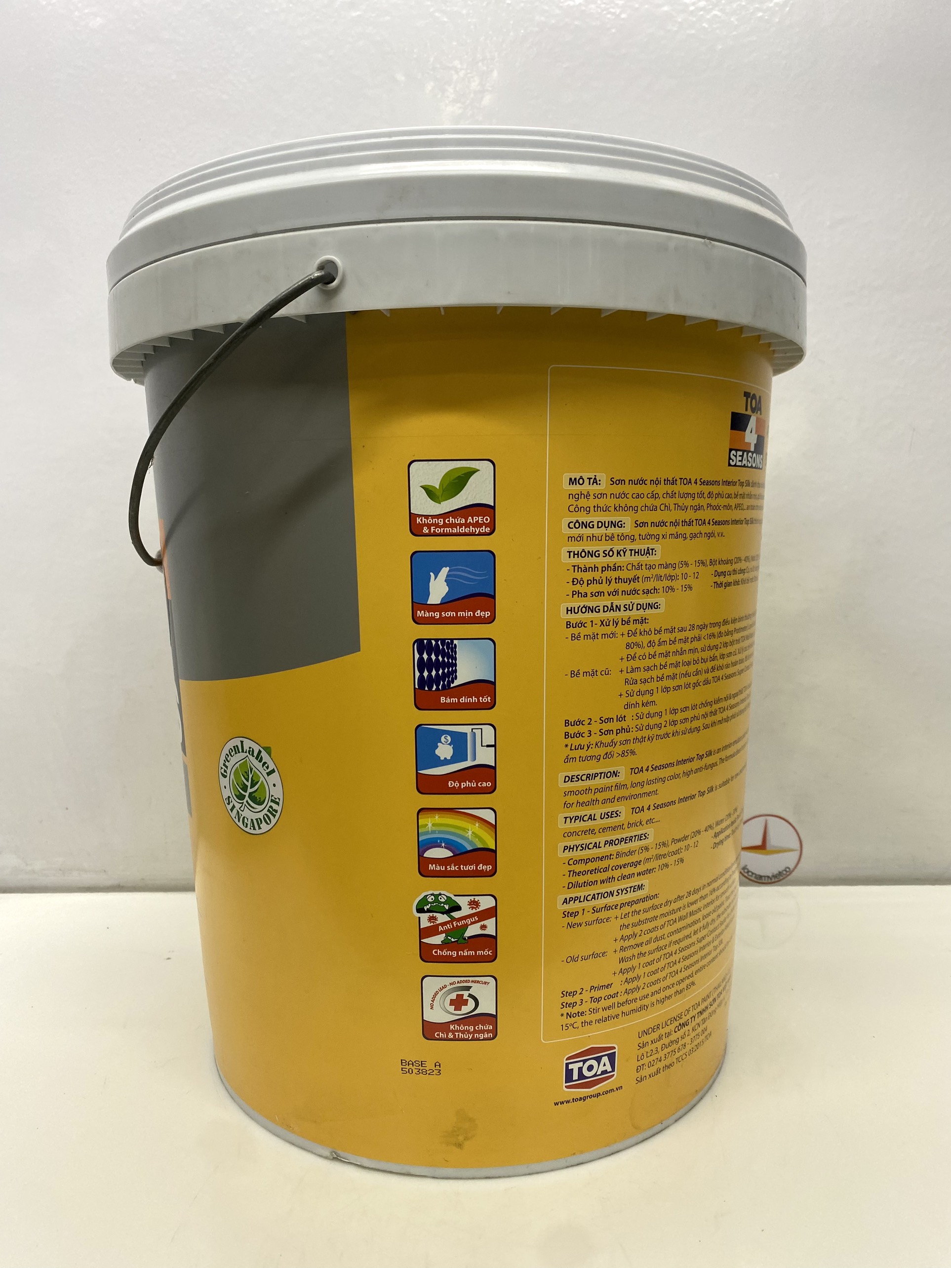 Sơn nước Toa 4 Season Top Silk dễ lau chùi nội thất NHIỀU MÀU _18L Sơn Nước nội thất Toa 4 Season top silk dễ lau chùi được chế tạo từ nhựa nhũ tương, với