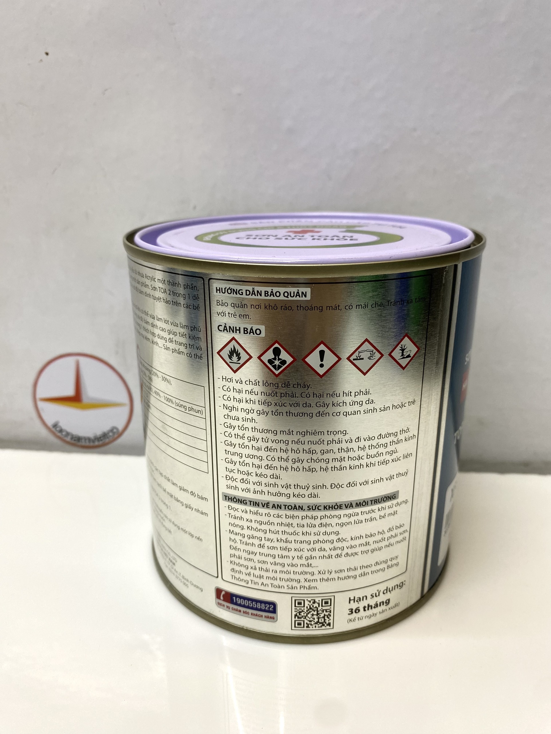 Không sử dụng crom, chì . MỤC ĐÍCH SỬ DỤNG: Sơn TOA 2 trong 1 thích hợp dùng để trang trí và bảo vệ cho các vật liệu thép mạ kẽm, nhôm, inox, sắt, gỗ… Sử dụng được cho cả trong nhà và ngoài trời. THÔNG SỐ KỸ THUẬT Màu sắc: trắng 111, xanh 620, xanh 601, xanh 631, xanh 618, xanh lá 614, xám 125, 120, xanh 642, xanh 671, bạc 000, xám 192, trắng mờ 222, xám xingfa XF911, XF910, XF350, xám 189, xám 191, đen 999, đen mờ 888, đỏ 335, đỏ 336, đỏ nâu 720, cánh dán 721, kem 112, kem 115, vàng 445, 273 cam 232. PHƯƠNG PHÁP THI CÔNG Dụng cụ:cọ, ru lô, máy phun sơn HƯỚNG DẪN THI CÔNG Bước 1 - Chuẩn bị bề mặt: Bề mặt phải khô, sạch, không bị rỉ sét, không dính các tạp chất làm giảm độ bám dính như: bụi bẩn. dầu mỡ, sáp hay tạp chất khác Đối với các bề mặt cũ cần loại bỏ lớp sơn cũ và làm sạch bề mặt bằng giấy nhám thích hợp. Bước 2 - Sơn phủ: Phủ hoàn thiện bằng 2 – 3 lớp sơn TOA2 trong 1 *Lưu ý: Khuấy sơn thật kỹ trước khi sử dụng. Sau khi mở nắp nên sử dụng hết. Nhận giao hàng: Vũng Tàu, Bình Dương, Bình Phước, Long An, Đồng Nai, TP.HCM gửi hàng đi Toàn Quốc giá rẻ.