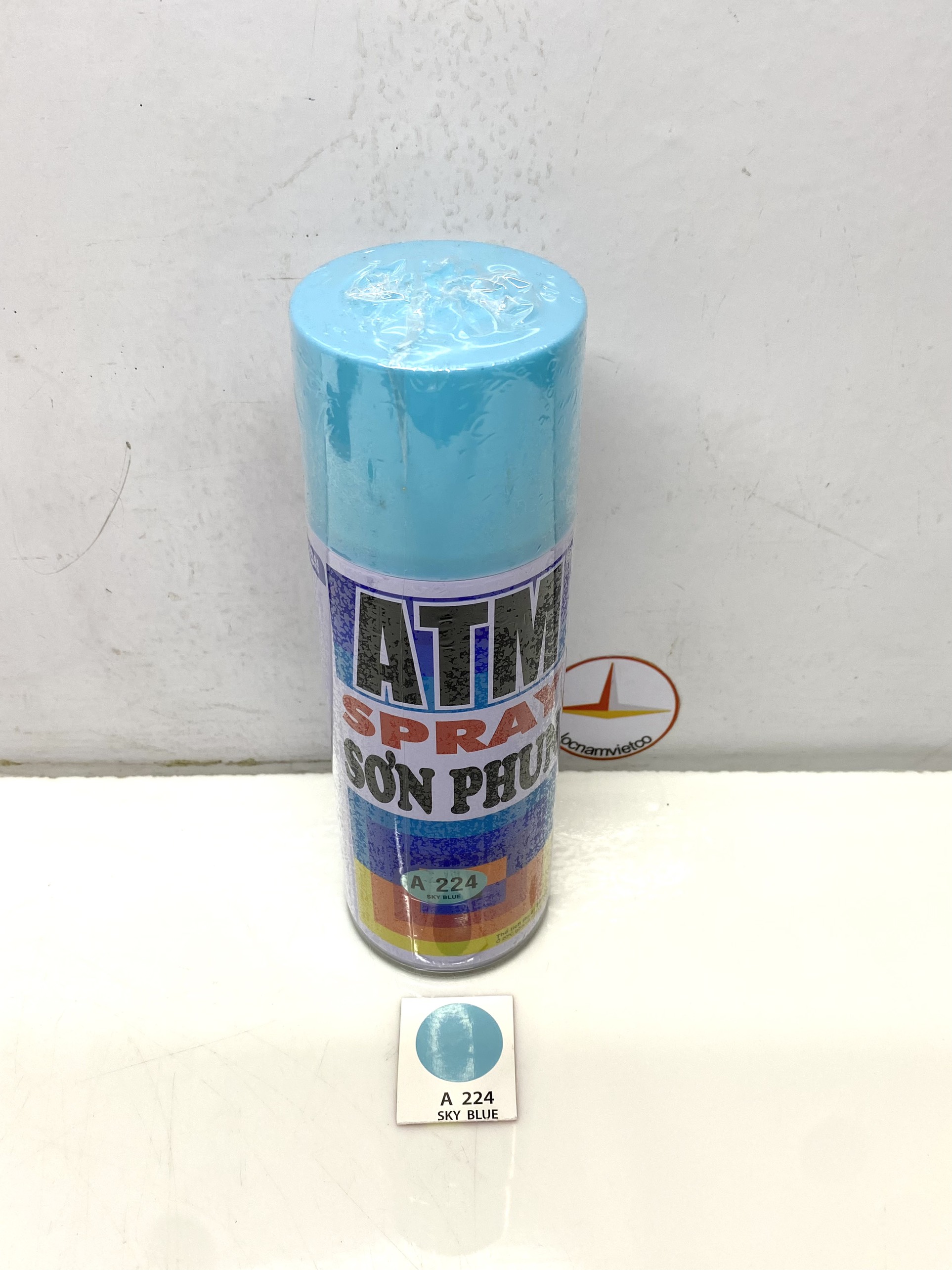 Mua tại TiktokSơn xịt màu xanh da trời ATM A224 SƠN PHUN “ATM” ACRYLIC: Đặc chế từ hỗn hợp nhựa N/C và ACRYLIC, được đóng gói dưới dạng bình xịt cầm tay rất tiện dụng, dùng sơn để trang trí cho các bề mặt bằng gỗ và kim loại như: đồ gia dụng, bàn, ghế, đồ chơi trẻ em, xe đạp, xe máy