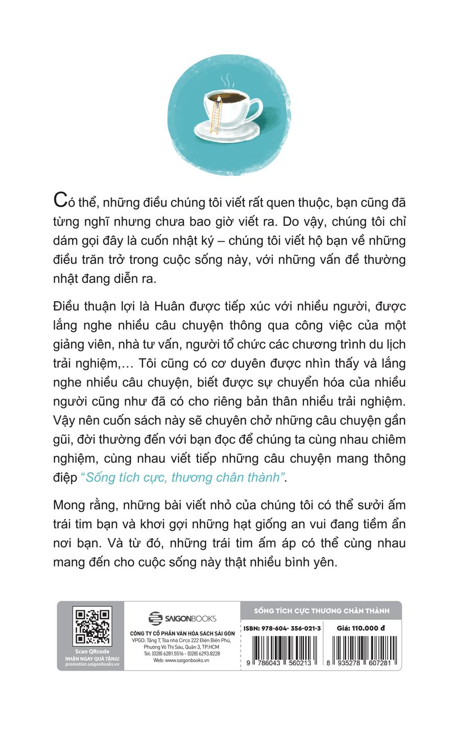 SỐNG TÍCH CỰC, THƯƠNG CHÂN THÀNH Nhật ký của những người trưởng thành Sống Tích Cực, Thương Chân Thành là một bản thảo ăm ắp những trải nghiệm của Lê Minh Huân, một người còn trẻ nhưng đầy những trăn trở về cuộc sống, luôn muốn đóng góp những điều tích cực và khơi mở những giá trị thiện lành bằng những việc làm tử tế.   Cả 2 tác giả Lưu Đình Long, và Lê Minh Huân đều ăn chay. Trong khi Lê Minh Huân thực tập Phật giáo thì tác giả Lưu Đình Long cũng xuyên suốt một niềm tin. Ở họ, bạn đều nhìn cuộc sống bằng sự quán chiếu nhân-duyên-quả. Rất có thể, những điều họ viết rất quen thuộc, bạn cũng đã từng nghĩ nhưng chưa bao giờ viết ra. Vì vậy, bạn có thể xem đây là một cuốn nhật ký – gồm những dòng chữ, trang sách được 2 tác giả viết thay nỗi lòng bạn về những điều trăn trở trong cuộc sống này, với những vấn đề thường nhật đang diễn ra.   Vốn tác giả Lê Minh Huân có cơ hội được tiếp xúc với nhiều người, được lắng nghe nhiều câu chuyện thông qua công việc của một giảng viên, nhà tư vấn, người tổ chức các chương trình du lịch trải nghiệm… nên những câu chuyện của anh rất thực, và rất đời. Trong khi đó, Lưu Đinh Long lại có cơ duyên được nhìn thấy và lắng nghe nhiều câu chuyện, biết được sự chuyển hóa của nhiều người cũng như đã có cho riêng bản thân nhiều trải nghiệm. Vậy nên cuốn sách này sẽ chuyên chở những câu chuyện gần gũi, đời thường đến với bạn để chúng ta cùng nhau chiêm nghiệm, cùng nhau viết tiếp những câu chuyện mang thông điệp “Sống tích cực, thương chân thành”.   Sách Sống tích cực, thương chân thành - Cuốn nhật ký của những người trưởng thành   Sống Tích Cực, Thương Chân Thành có gì? Như chúng ta đã nói, Sống Tích Cực, Thương Chân Thành là một nhật ký của người trưởng thành, vì vậy, bạn có thể mở và đọc bất kỳ chương nào bạn thấy hứng thú. Điều này không ảnh hưởng tới những câu chuyện nho nhỏ, dễ thương của cuốn sách. Nhưng dĩ nhiên, nếu có thể, bạn nên đọc từng trang từng trang, đọc từ đầu tới cuối để cảm nhận những suy nghĩ, nỗi niềm mà đâu đó bạn đã từng có. Từ đó, bạn có thể nhìn lại quá trình trưởng thành của mình đã từng có những suy nghĩ rất ngây ngô như tại sao mẹ lại la mắng hay đánh ta, cho đến việc hẹn hò với chính mình. Hẹn hò với bản thân nghe có vẻ khá lạ lẫm, nhưng cuộc hẹn ấy sẽ trở nên rất thú vị nếu bạn có thể dần tập trung vào bên trong, vào tâm hồn mình, vào con người hiện hữu đang buồn, đang vui, đang phấn khởi, đang hạnh phúc, con người vừa mới chia tay một ai, con người vừa phải qua một điều bất như ý trong đời,... Thậm chí đến cái áp lực “không được phép thất nghiệp” hay “không để xảy ra tình trạng vô công rỗi nghề quá lâu” khi vừa ra trường, cùng vô số vấn đề khác mà chúng ta đã, đang, và sẽ có thể trải qua.   Và bạn biết đấy, đâu có gì quý giá hơn là thương chân thành và cũng không có yêu thương chân thành nào mà không bắt đầu bằng suy nghĩ cùng lối sống tích cực. Mong rằng, những bài viết nhỏ của 2 tác giả có thể sưởi ấm trái tim bạn và khơi gợi những hạt giống an vui đang tiềm ẩn nơi bạn. Và từ đó, những trái tim ấm áp có thể cùng nhau mang đến cho cuộc sống này thật nhiều bình yên.