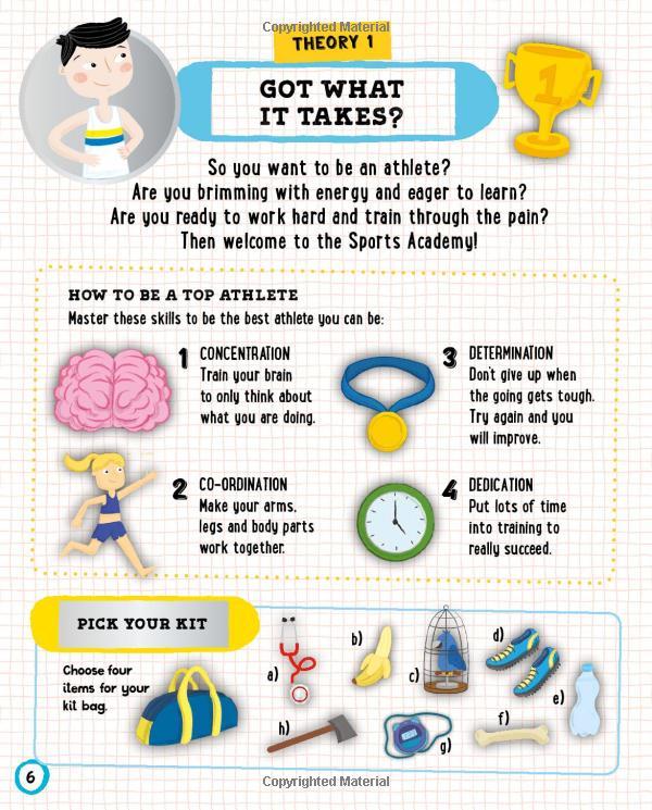 Simple tasks will test your skills and reinforce the information you read in the book. Do you know where your Achilles heel is? Can you check your pulse? How do you train and prepare for an important competition? Take a look inside to find out!