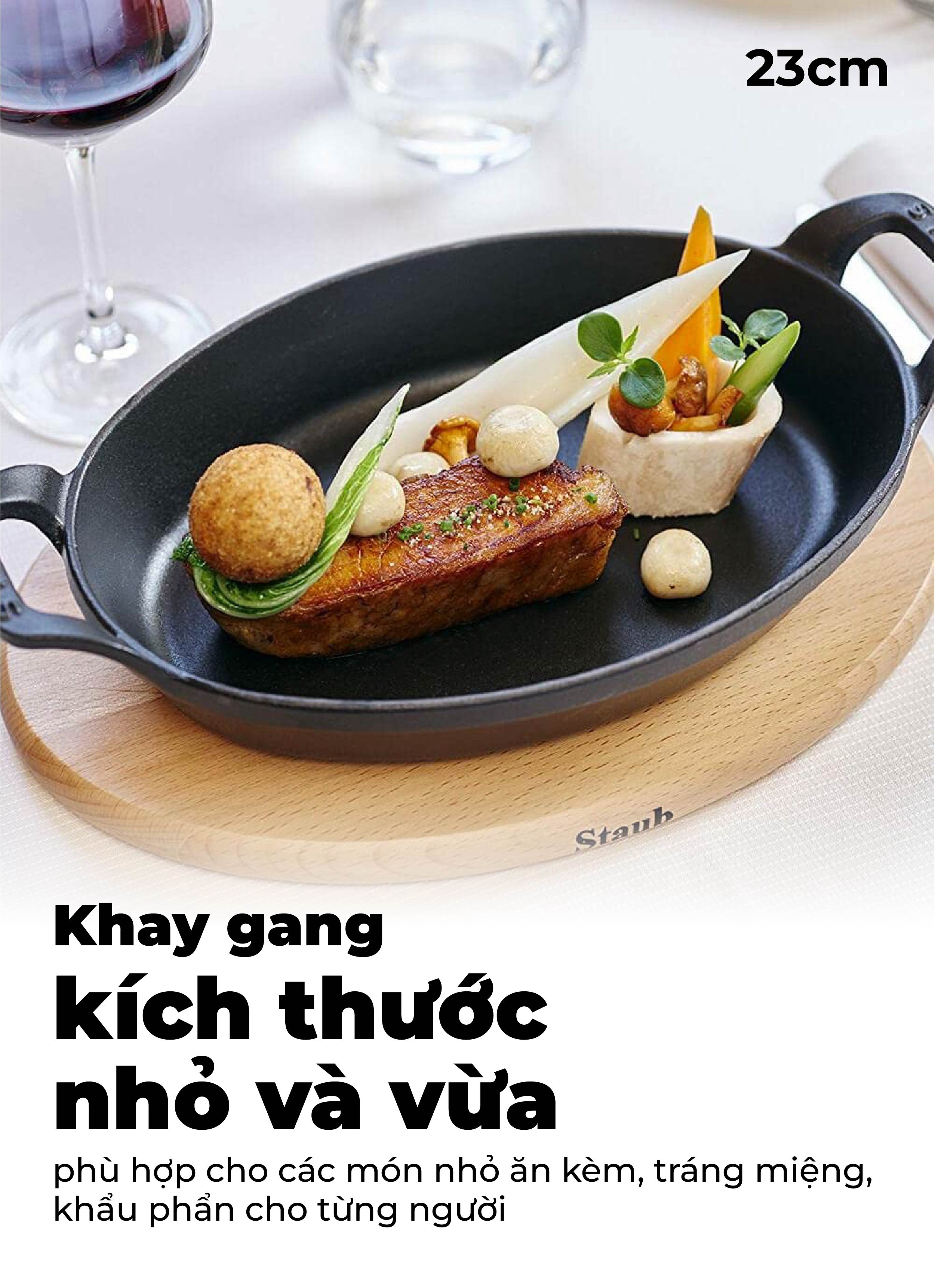 Sản phẩm khay gang oval STAUB màu đen từ thương hiệu STAUB nổi tiếng tại Pháp, mang đến trải nghiệm nấu nướng mới mẻ khi khay có thể dùng để nướng bánh, áp chảo thực phẩm, kể cả tạo điểm nhấn độc đáo trên bàn ăn với thiết kế sang trọng.