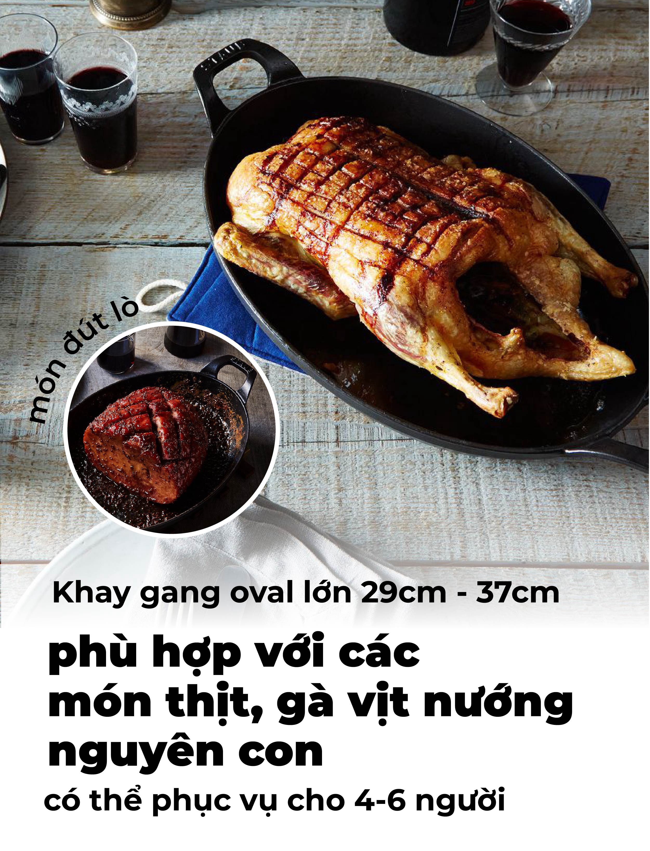 Sản phẩm khay gang oval STAUB màu đen từ thương hiệu STAUB nổi tiếng tại Pháp, mang đến trải nghiệm nấu nướng mới mẻ khi khay có thể dùng để nướng bánh, áp chảo thực phẩm, kể cả tạo điểm nh...