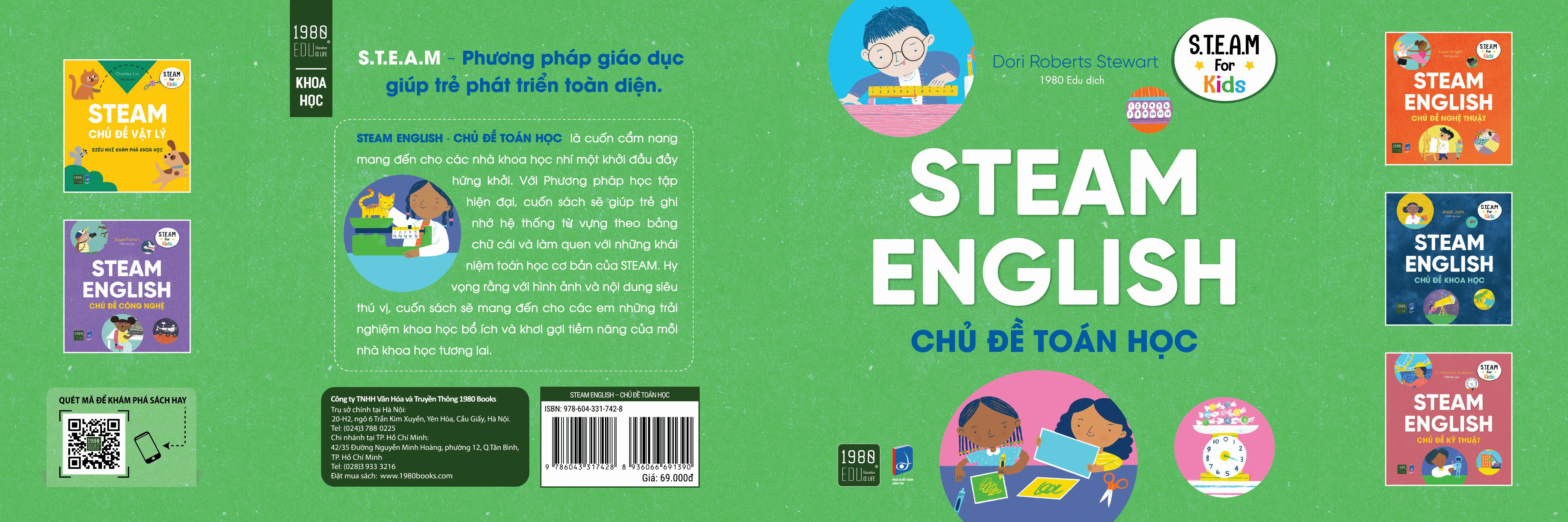 STEAM ENGLISH – CHỦ ĐỀ TOÁN HỌC là cuốn cẩm nang mang đến cho các nhà khoa học nhí một khởi đầu đầy hứng khởi. Với phương pháp học hiện đại cuốn sách sẽ giúp trẻ ghi nhớ hệ thống từ vựng theo bảng chữ cái và làm quen với những khái niệm Toán học cơ bản của STEAM. Hy vọng rằng với hình ảnh và nội dung siêu thú vị, cuốn sách sẽ giúp các em có được những trải nghiệm khoa học ích và khơi gợi tiềm năng của những nhà khoa học tương lai.