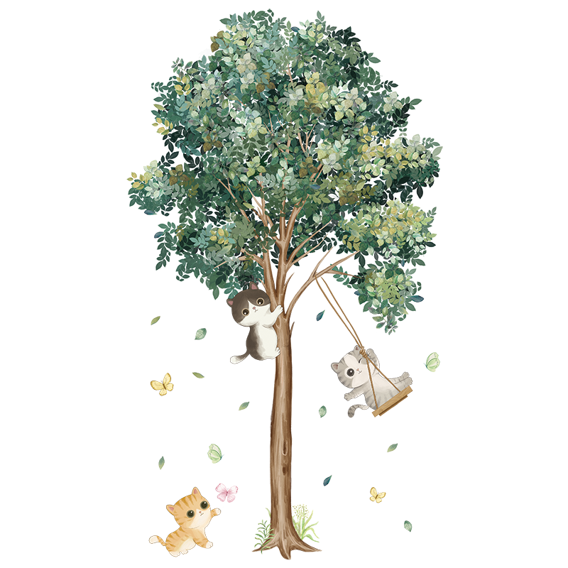 ✨Sticker Giấy Dán Tường Decal Dán tường Tranh Dán Tường Trang Trí Tường Mẫu Mèo Chơi Xích Đu ZDB-2153